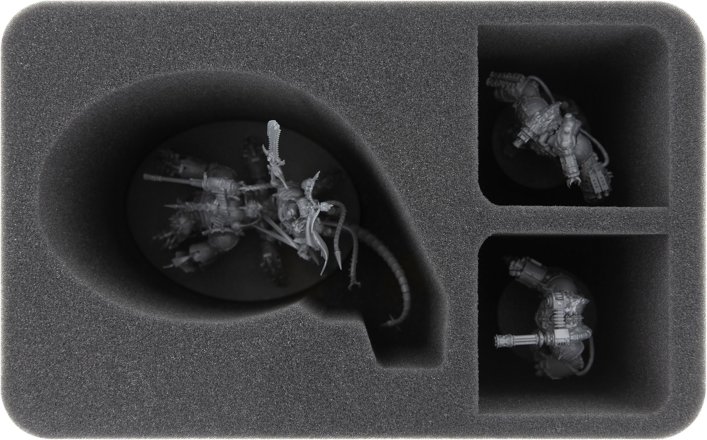Additionally the insert offers you with 2 rectangular compartments space for further models of the Chaos Space Marines, such as Obliterators, Havocs or several character models.