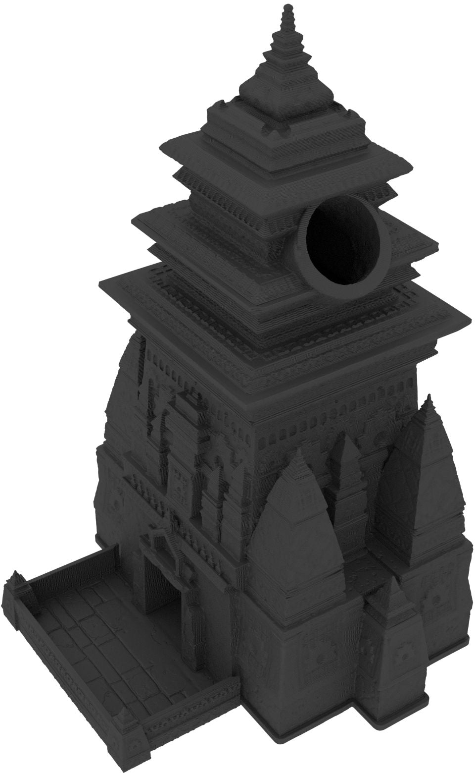 3D printed - detailed dice tower, with removable roof and exchangeable dice tray. The Dice Tower can also be used as a terrain part for your miniatures game or as a center piece for your next DnD session.