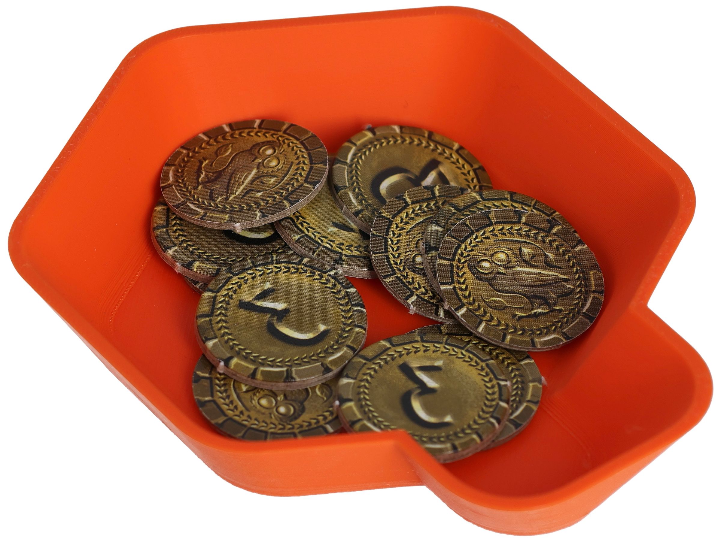 The token holder SHELL, made of sturdy plastic, helps you organize your various tokens and other small-sized game accessories.