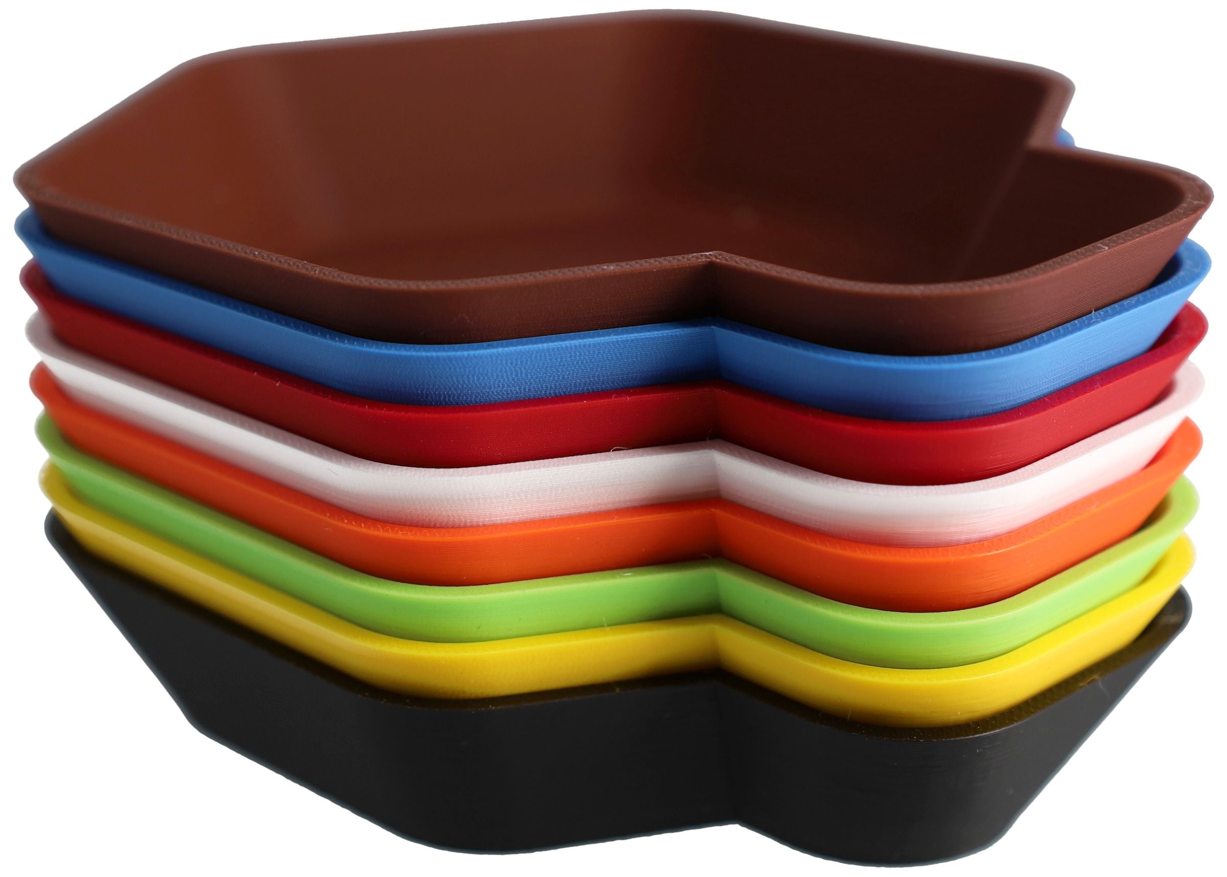 You can leave the saucers and dip bowls in the kitchen, because we provide you with these vivid Feldherr token trays. Sort your markers, tokens, and tiles now with style and color.