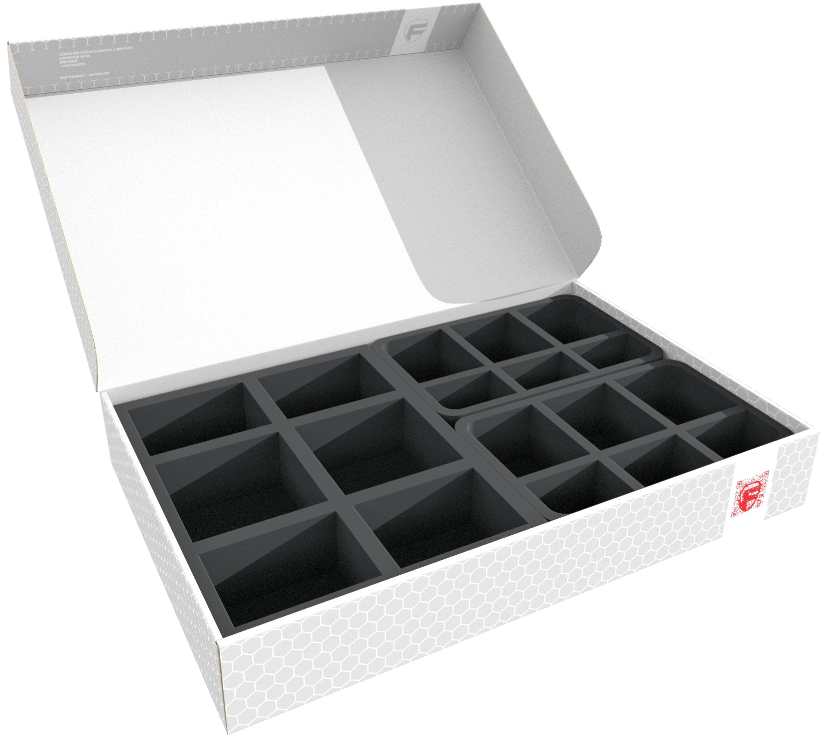 In this sturdy Storage Box DSLB075 your miniatures are optimally protected. In the custom Feldherr foam trays you can safely transport up to 18 warrior models to the battlefield.