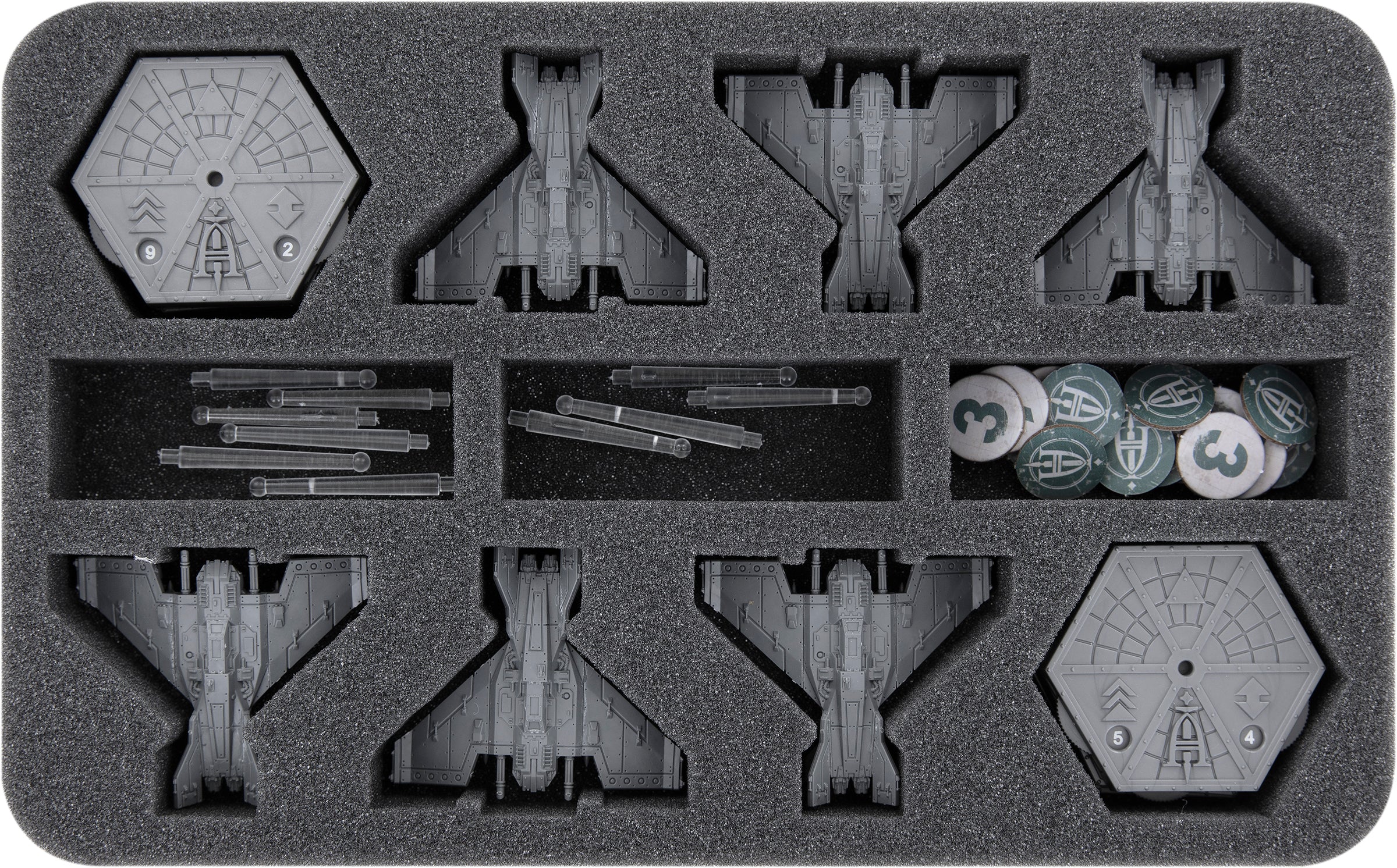 • 1 foam tray with 11 compartments for 6 Lightning Fighters or Lightning Strike Fighters + flying stems, flying bases and game material (HSMEXV035BO)