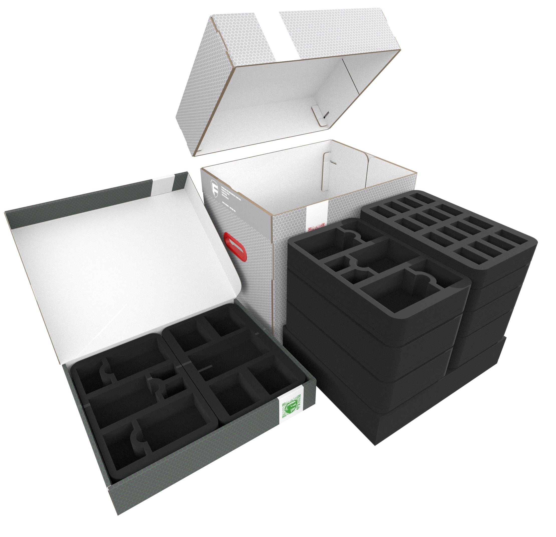 The included foam toppers complete the bundle. Nothing can fall out of the compartments and bump against the lids of the boxes during transport.