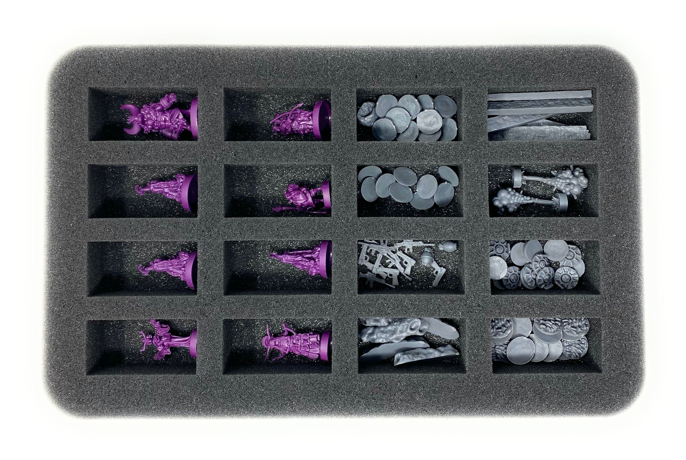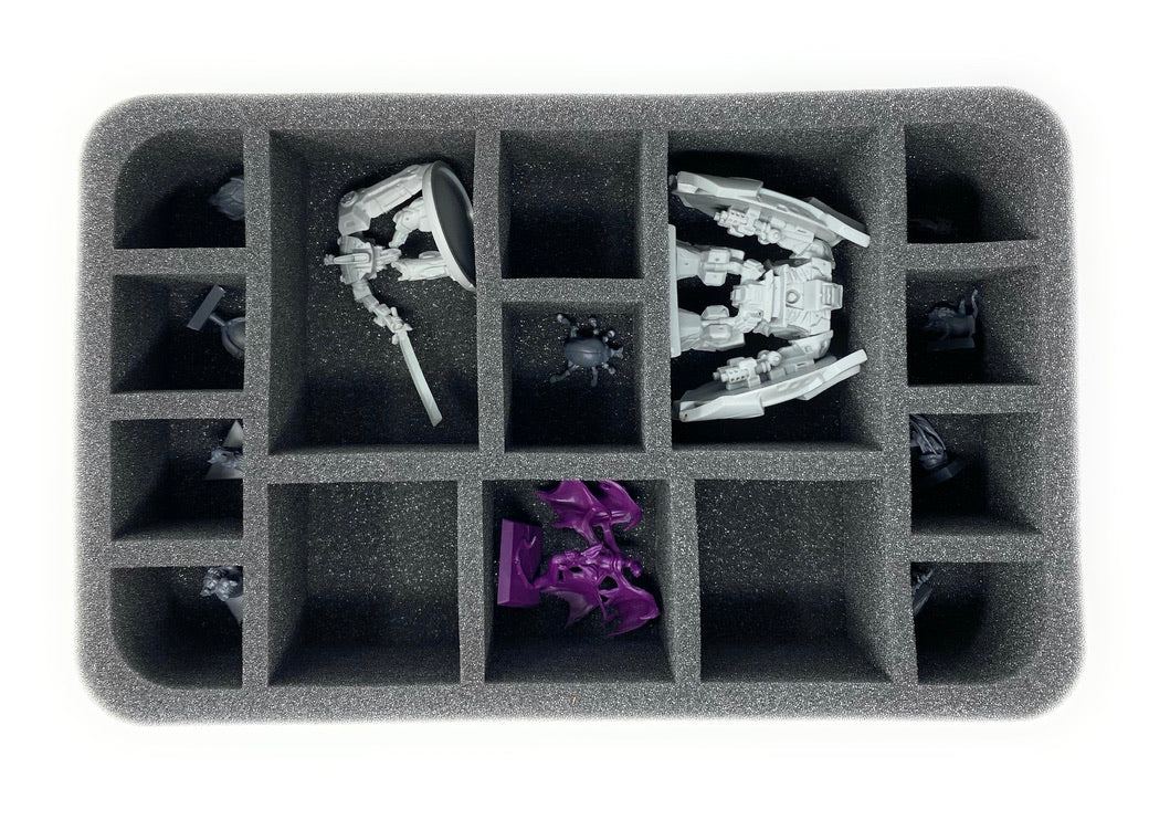 - 1 Half-Size foam tray with 16 compartments for miniatures like Dominator, Guards, Servants and Beastmasters (HS035BO)