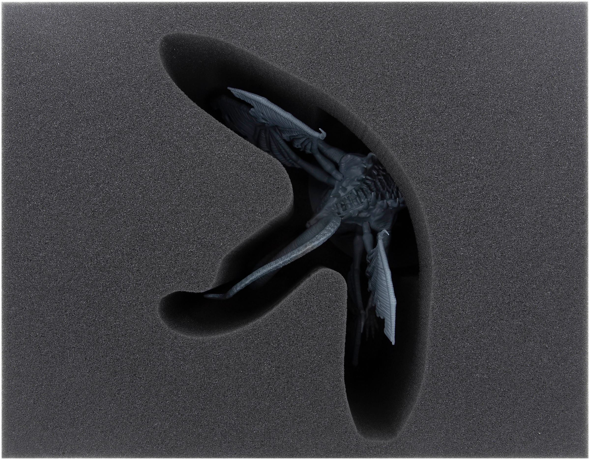 The foam trays for the large models Black Dragon Kalameet, Guardian Dragon und Gaping Dragon are two-part. In order to keep them safe, just place them (if applicable together with smaller miniatures) into the lower part of the tray. Then lay the upper part – which features a precision cut-out – on top. That’s it.
