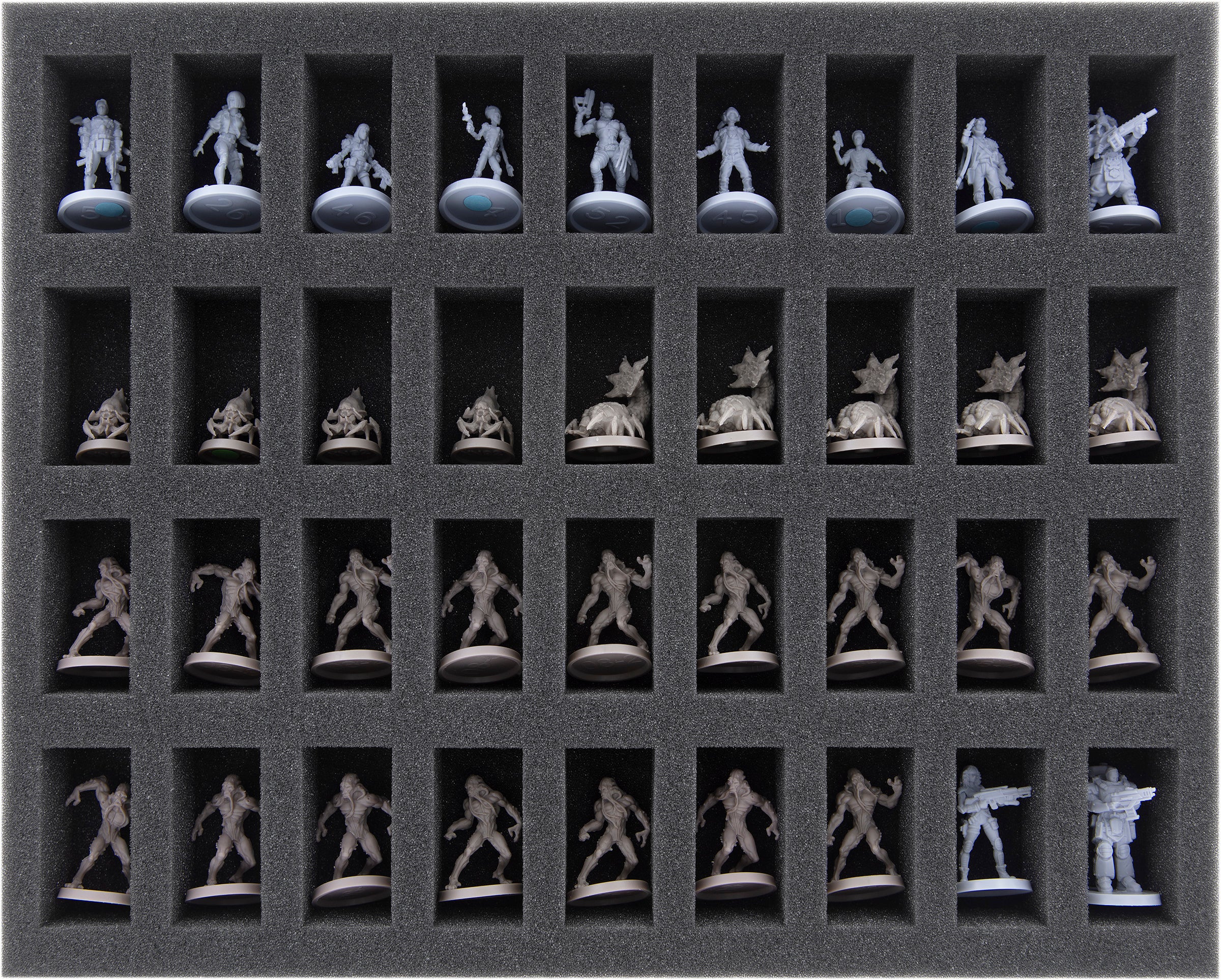 - 1 Full-Size foam tray with 36 compartments for miniatures (FS035BO)
