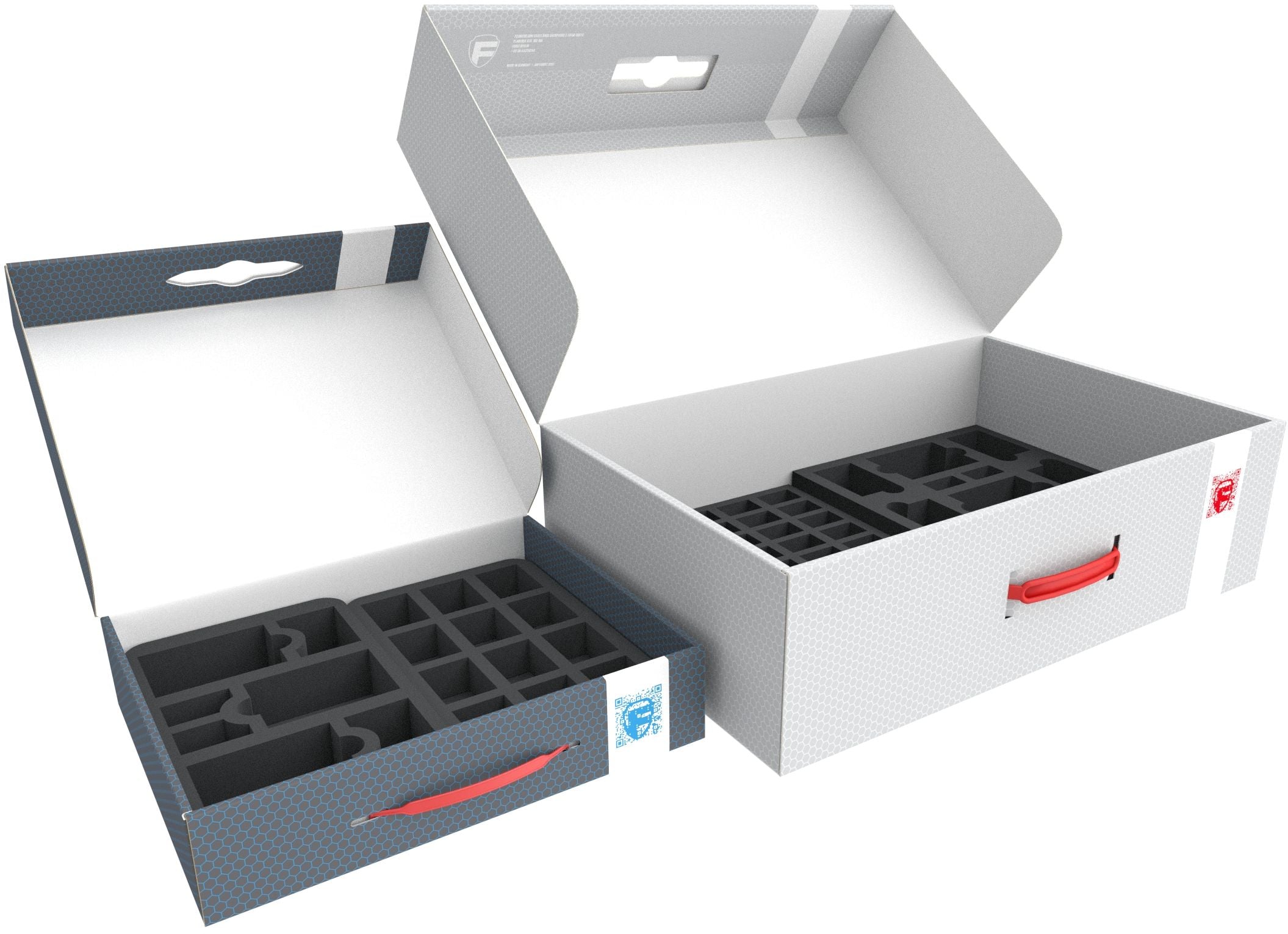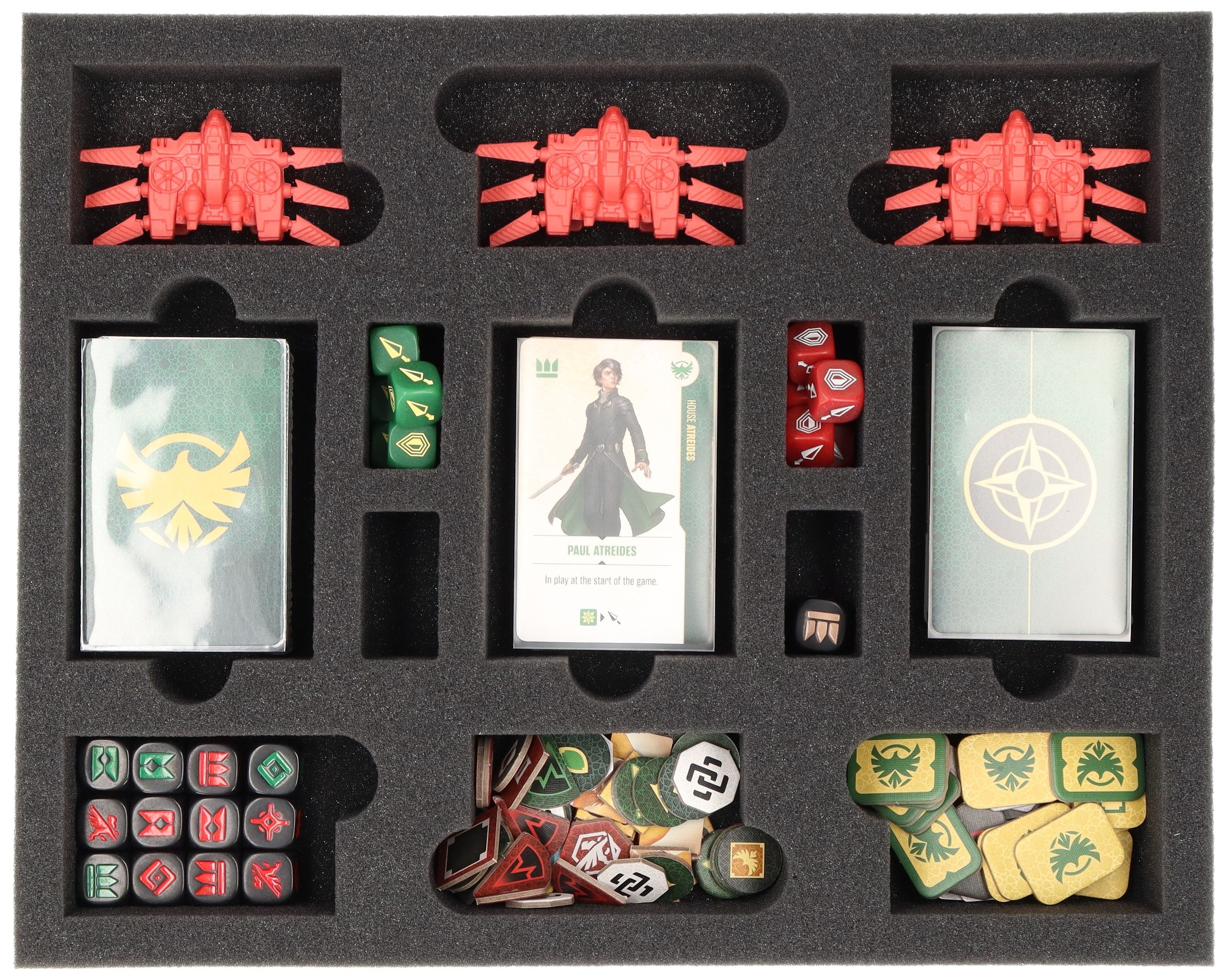 "Dune: War for Arrakis" and its two expansions offer over 160 detailed miniatures. Our suitable transport solution, the Storage Boxes DSLB150 and FSLB075 with custom Feldherr foam trays protects your figures and game materials.