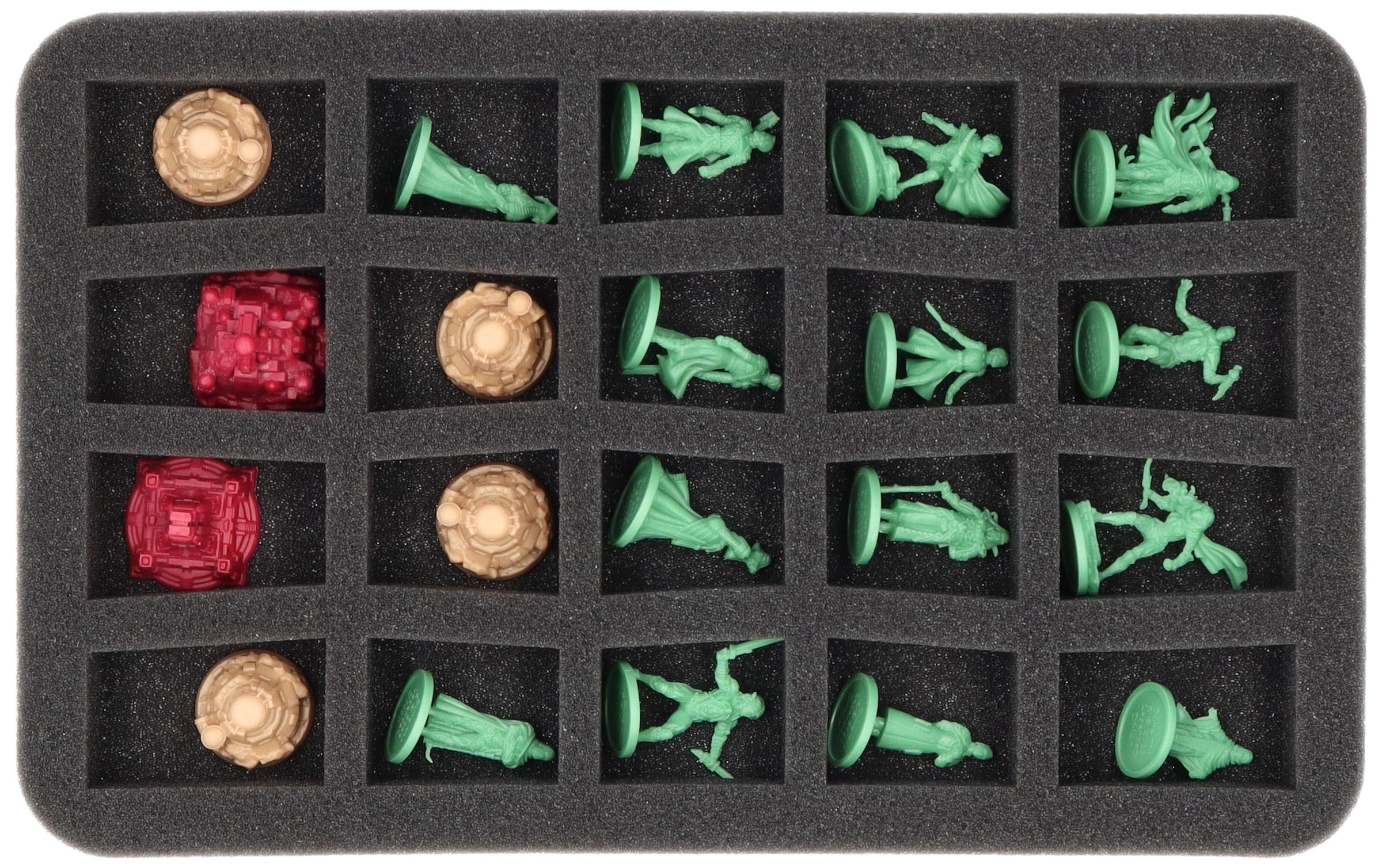 • 1 Full-Size foam tray with 13 compartments for miniatures, cards, and game material (FSLG050BO)