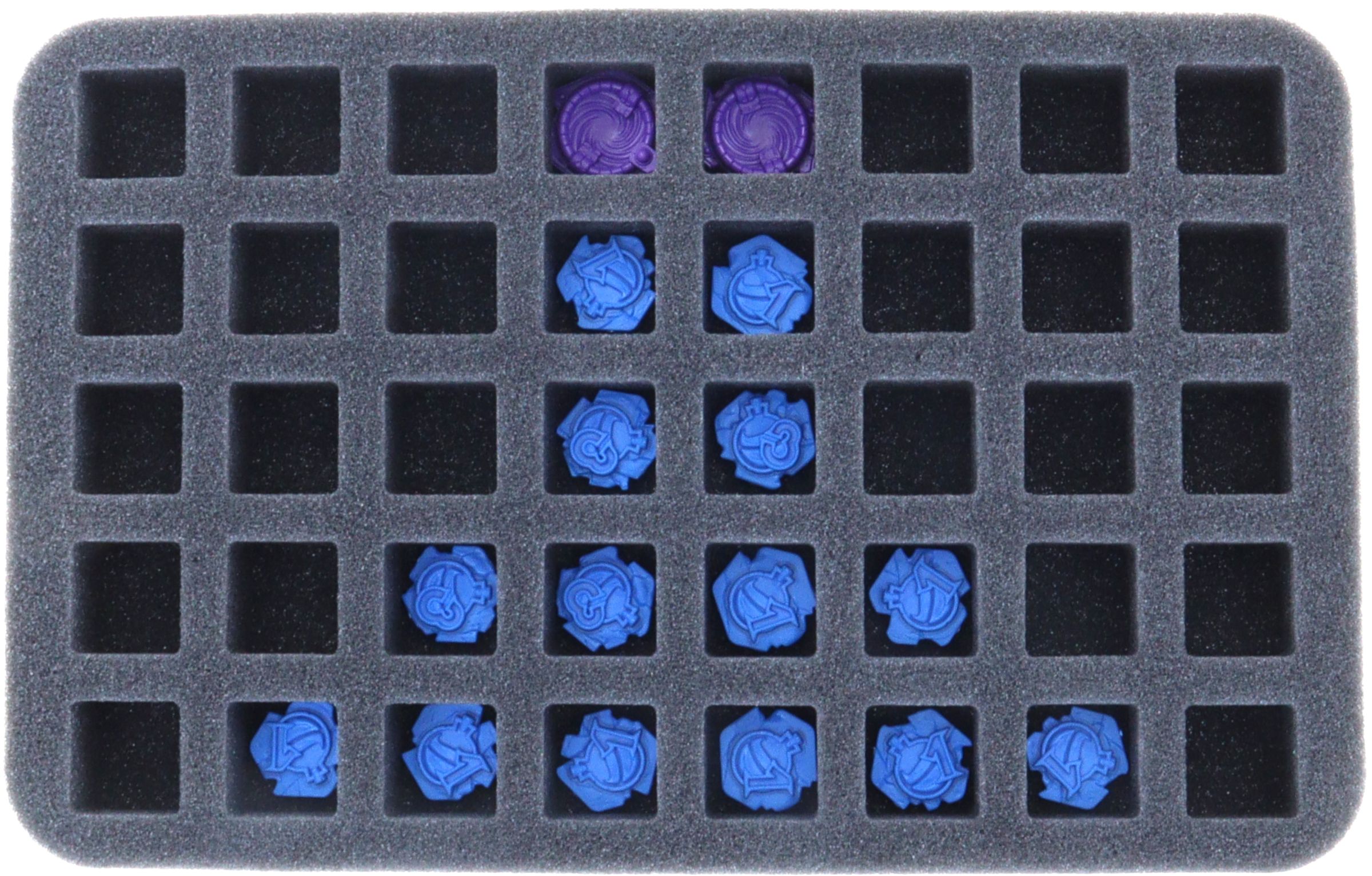 • 1 Half-Size foam tray with 40 compartments for small-sized game material like tokens and dice (HSMEMO030BO)