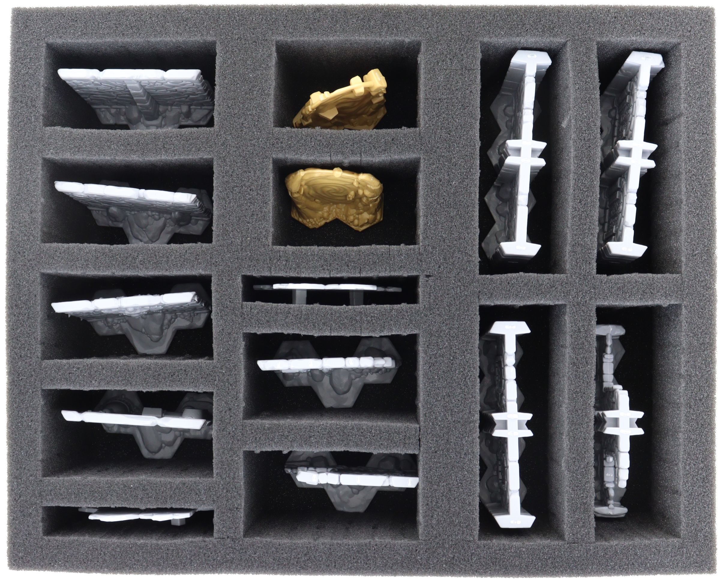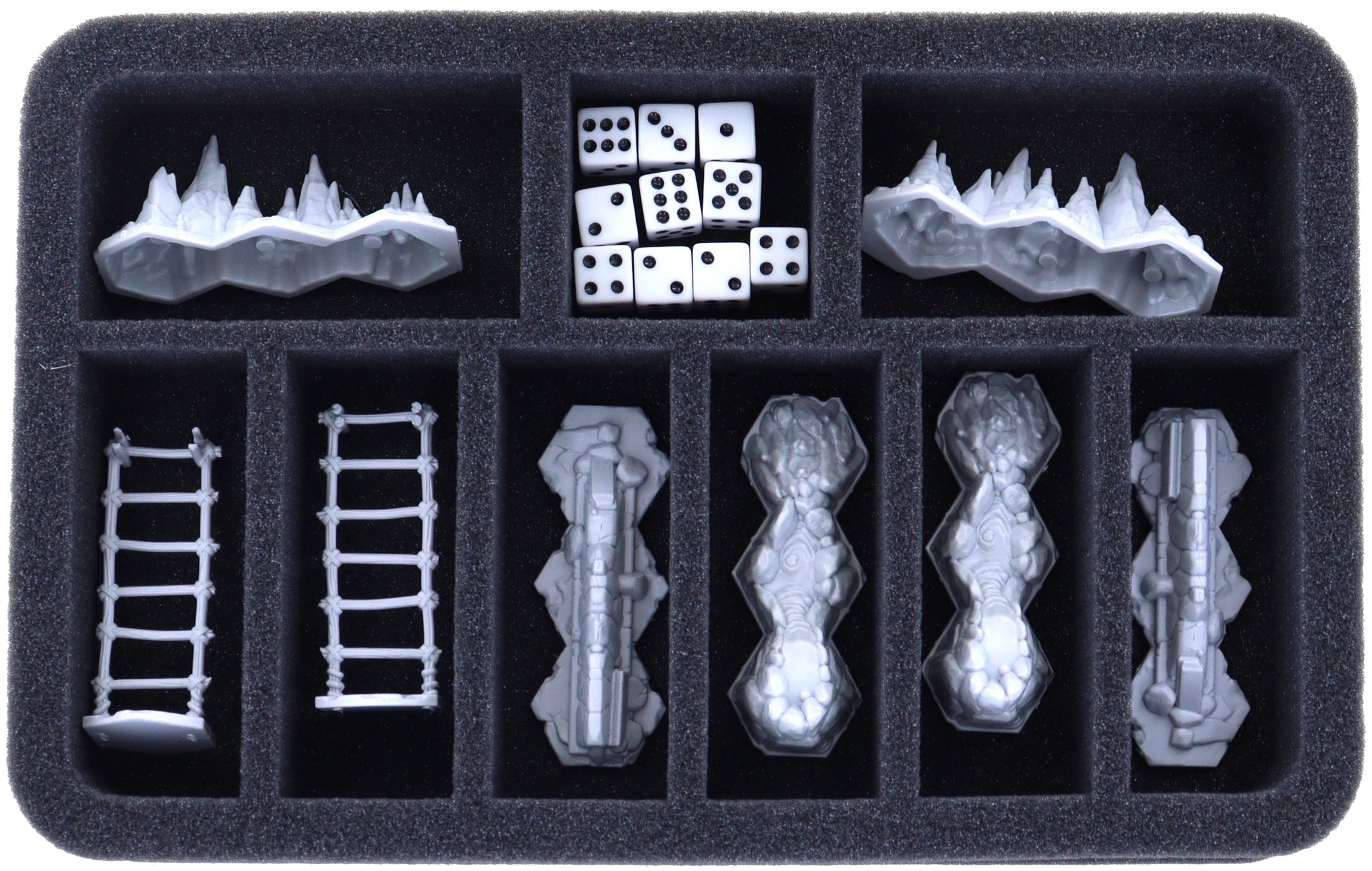 • 1 Full-Size foam tray with 26 compartments for miniatures + terrain pieces + small-sized game material like tokens (FSJQ035BO)