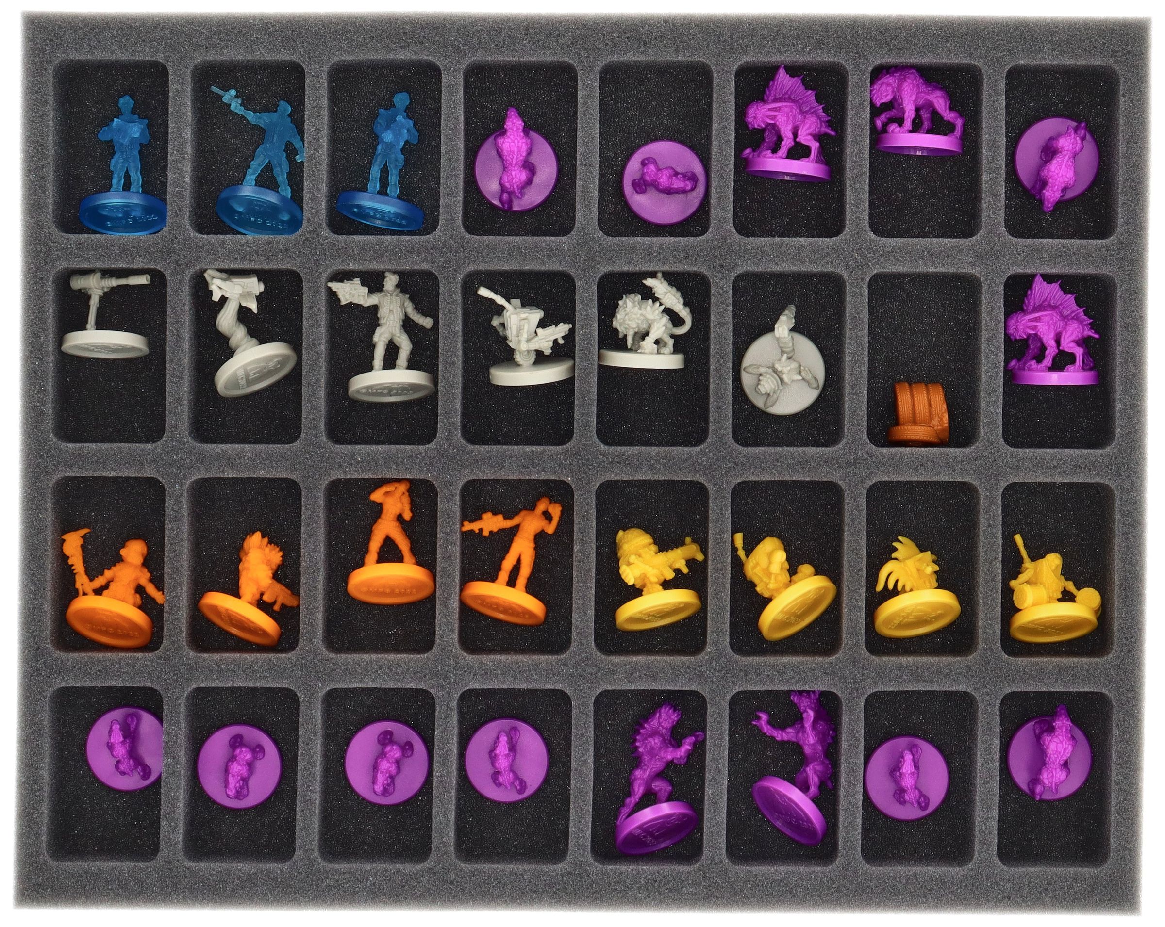 - 1 Full-Size foam tray with 32 compartments for miniatures (FSMEDS040BO)