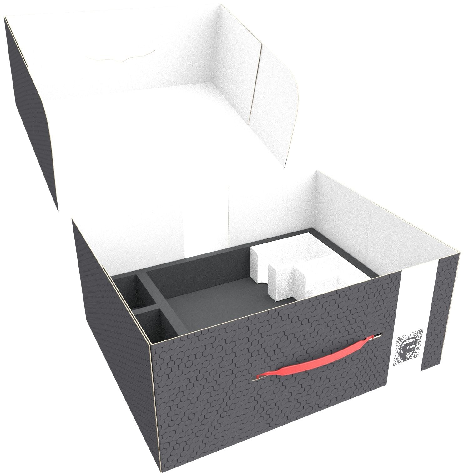 In this Storage Box FSLB150 with Feldherr foam trays and Organizer insert, all miniatures and game materials from three Kickstarter-exclusive expansions are neatly and securely stored.