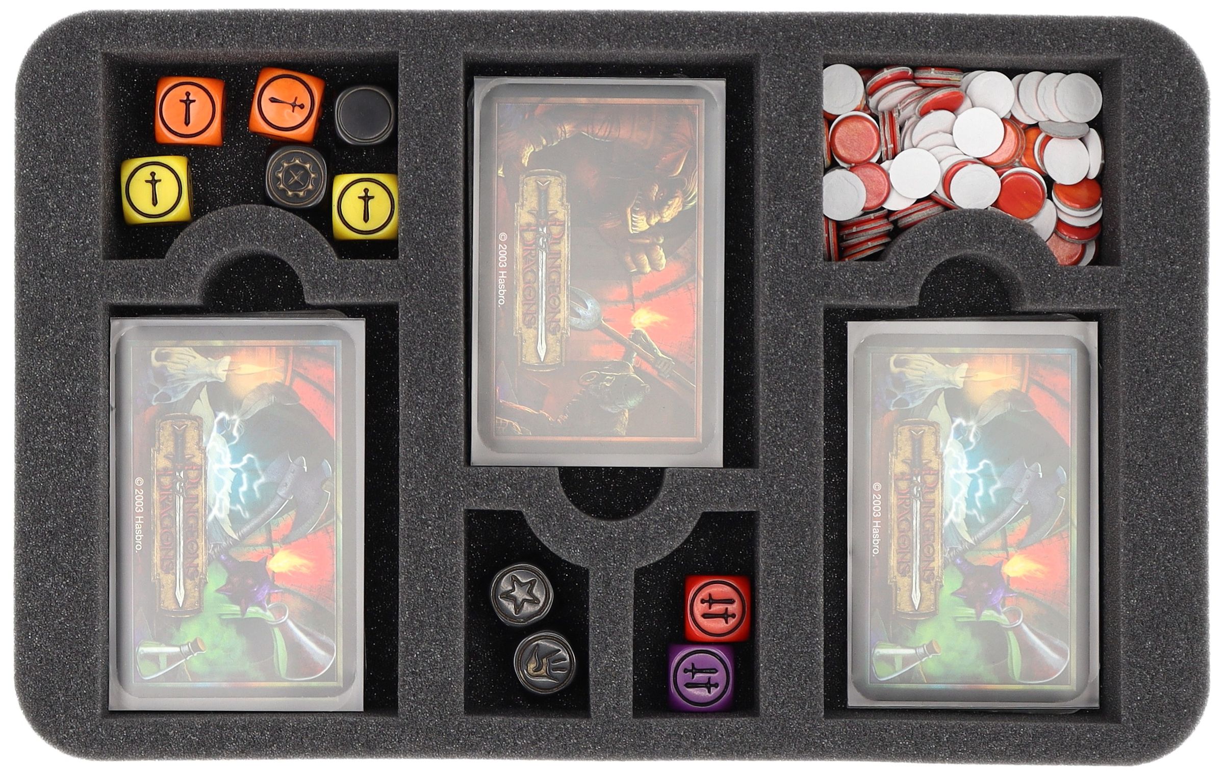 - 1 Half-Size foam tray with 7 compartments for game material like dice, tokens and game cards (HSMEQO050BO)