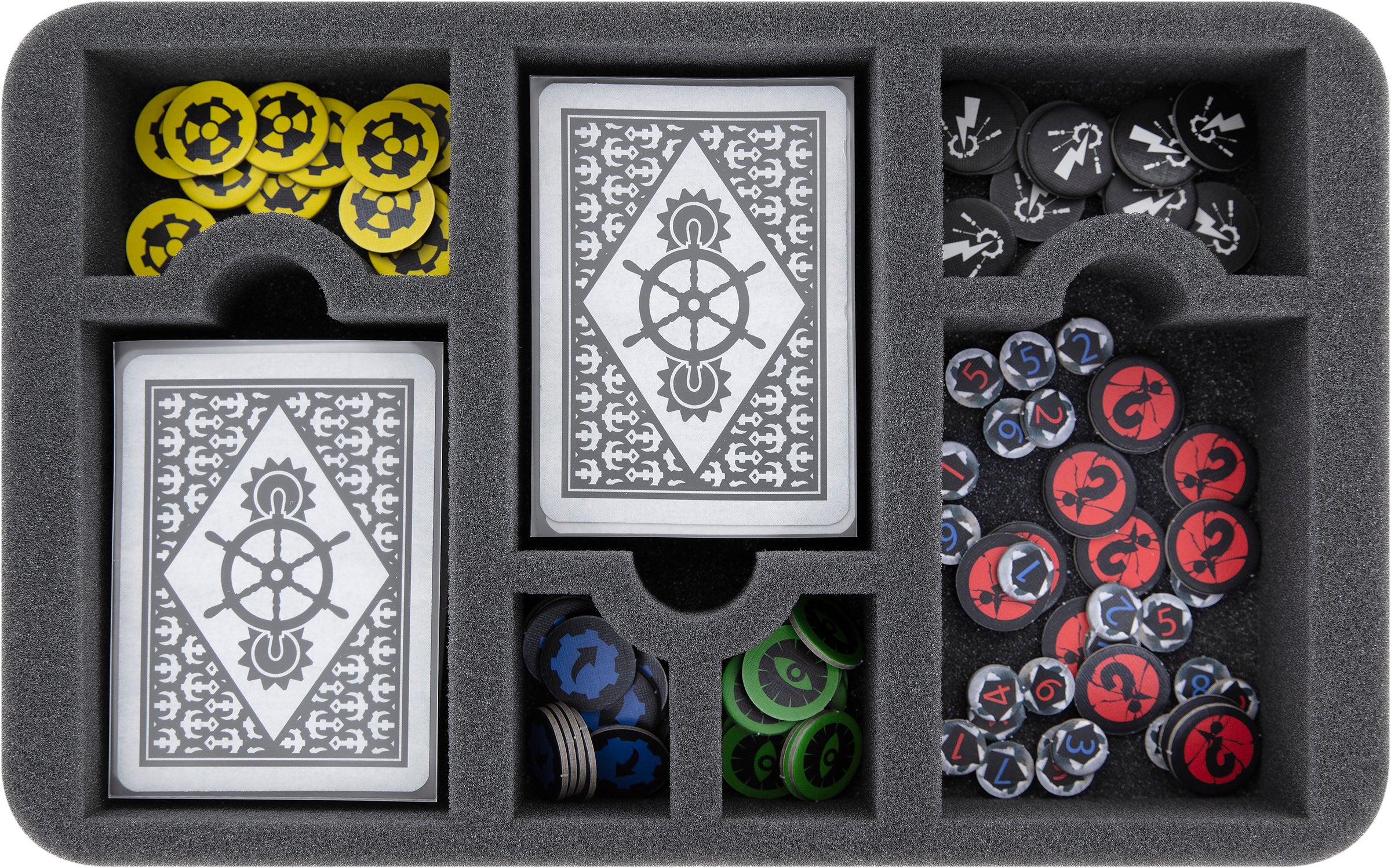- 1 Half-Size foam tray with 12 compartments for e.g. cards and other game material (HS050A088)