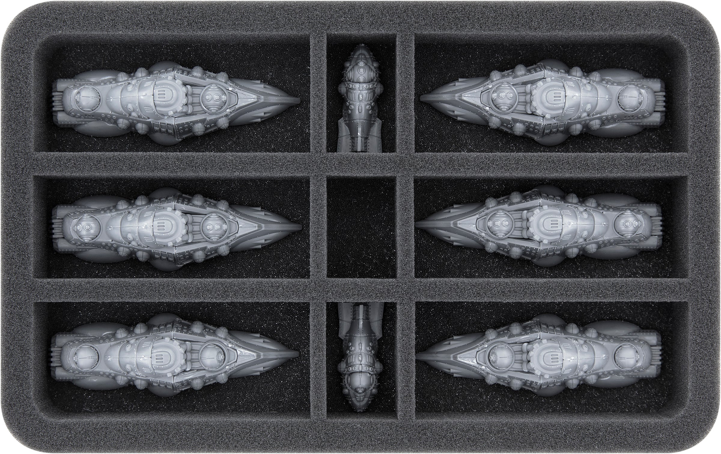 - 1 Half-Size foam tray with 12 compartments for e.g. Copernicus Class Heavy Cruisers, Merian Class Drone Frigates (HS035A044)
