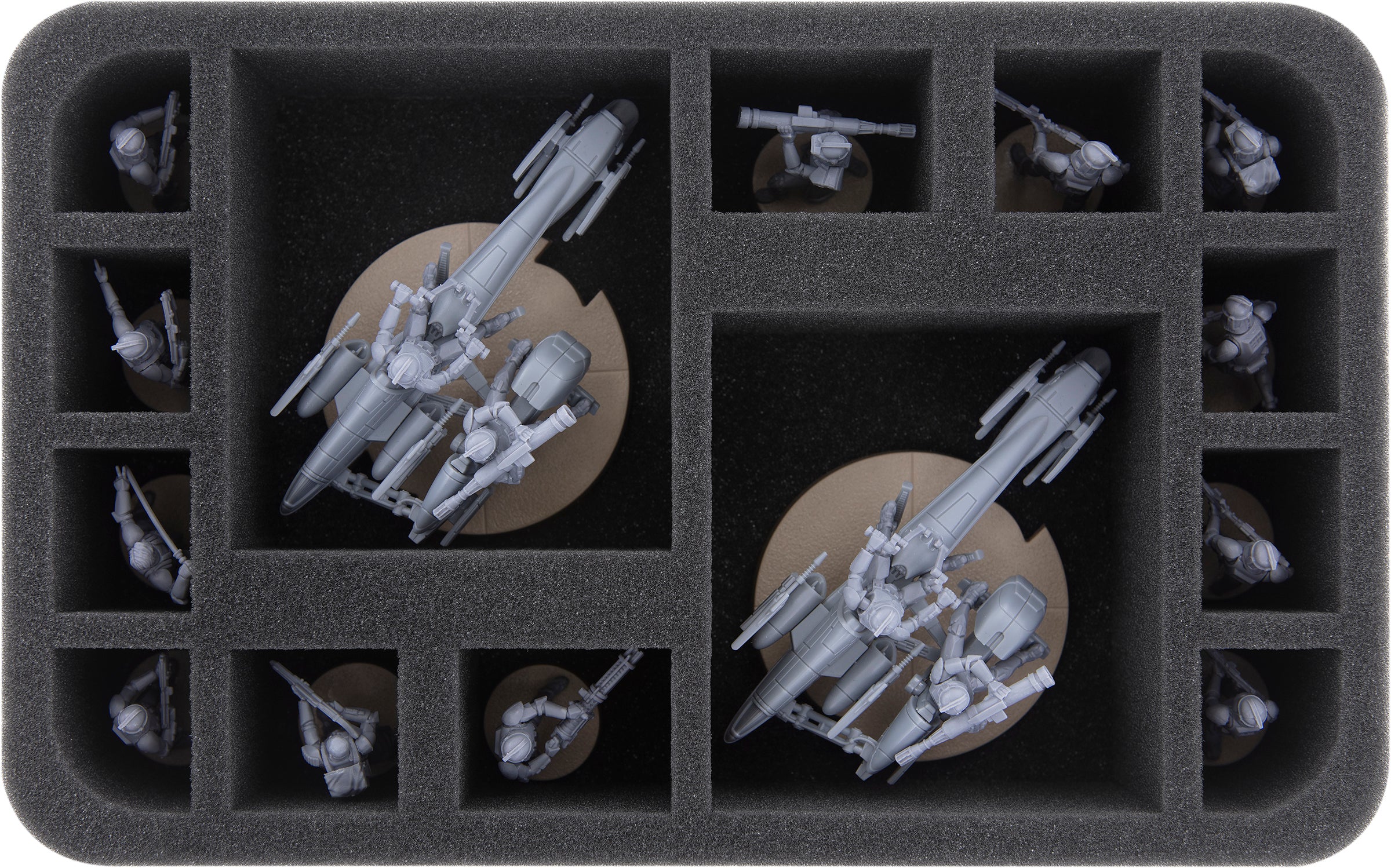 In the Feldherr tray HS060A027 you can store for example two BARC speeder and 12 standard infantry units, like clone troopers or similar sized miniatures.