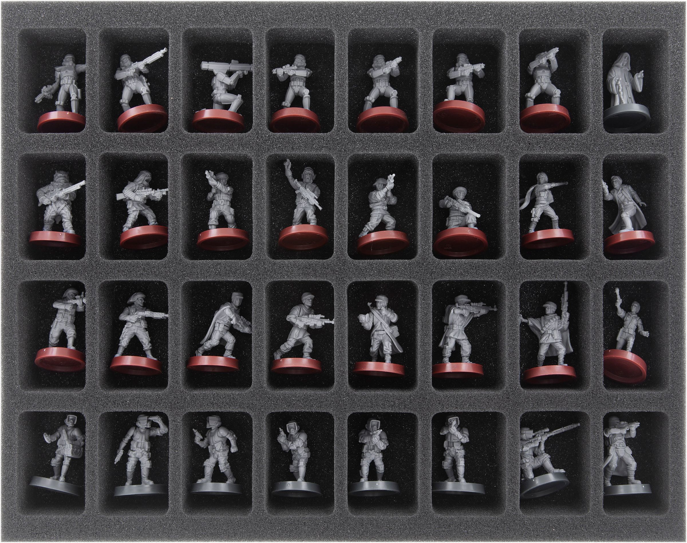 The clone troopers form the core of Republic troops. With the Full-Size foam tray FS040LG08 you get a safe storage for up to 32 Star Wars: Legion miniatures. The compartments of the insert are suitable for most trooper, commander or specialist models.