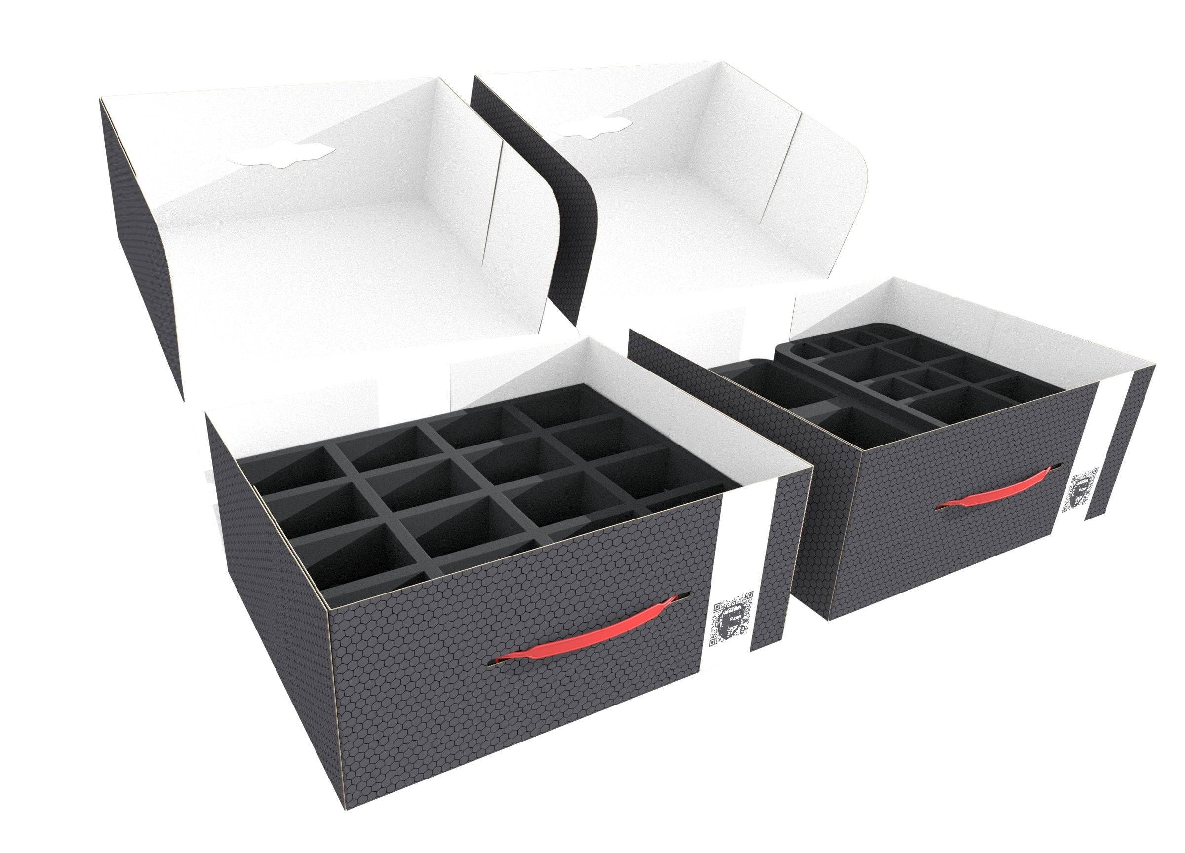 - 2 Half-Size foam trays each with 12 compartments for miniatures (HSMECP040BO)