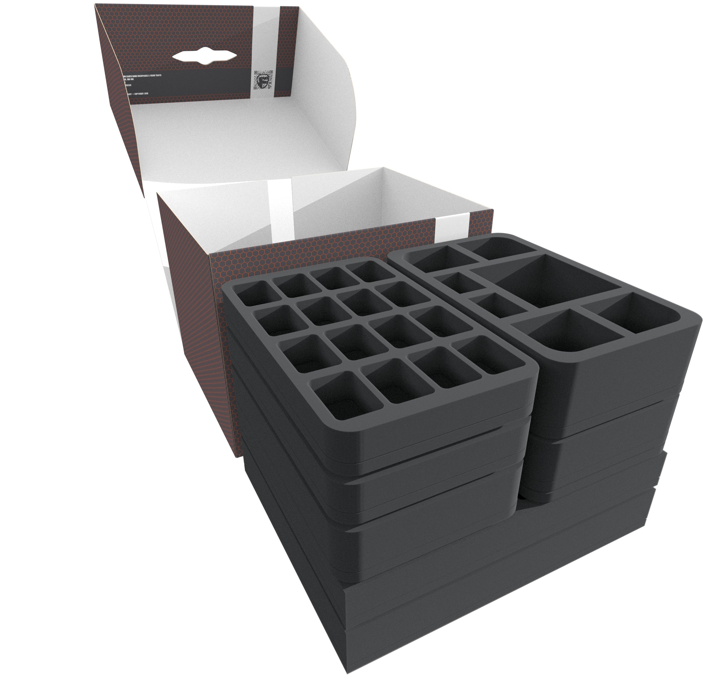• 2 Half-Size foam trays with 16 compartments each for miniatures (HS035BF05BO)