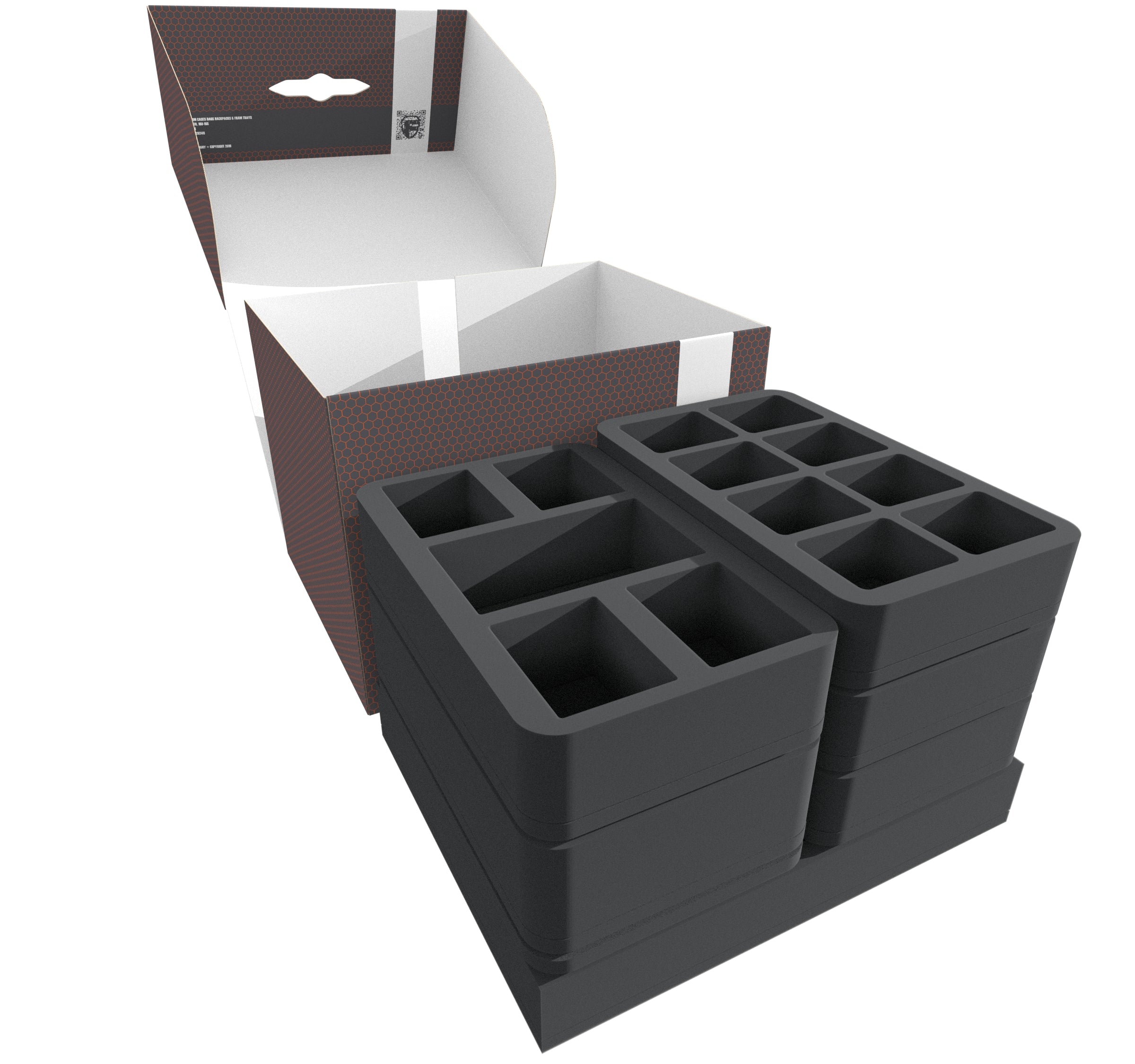 • 1 Half-Size foam tray for 8 medium-sized miniatures (HS050BF02BO)