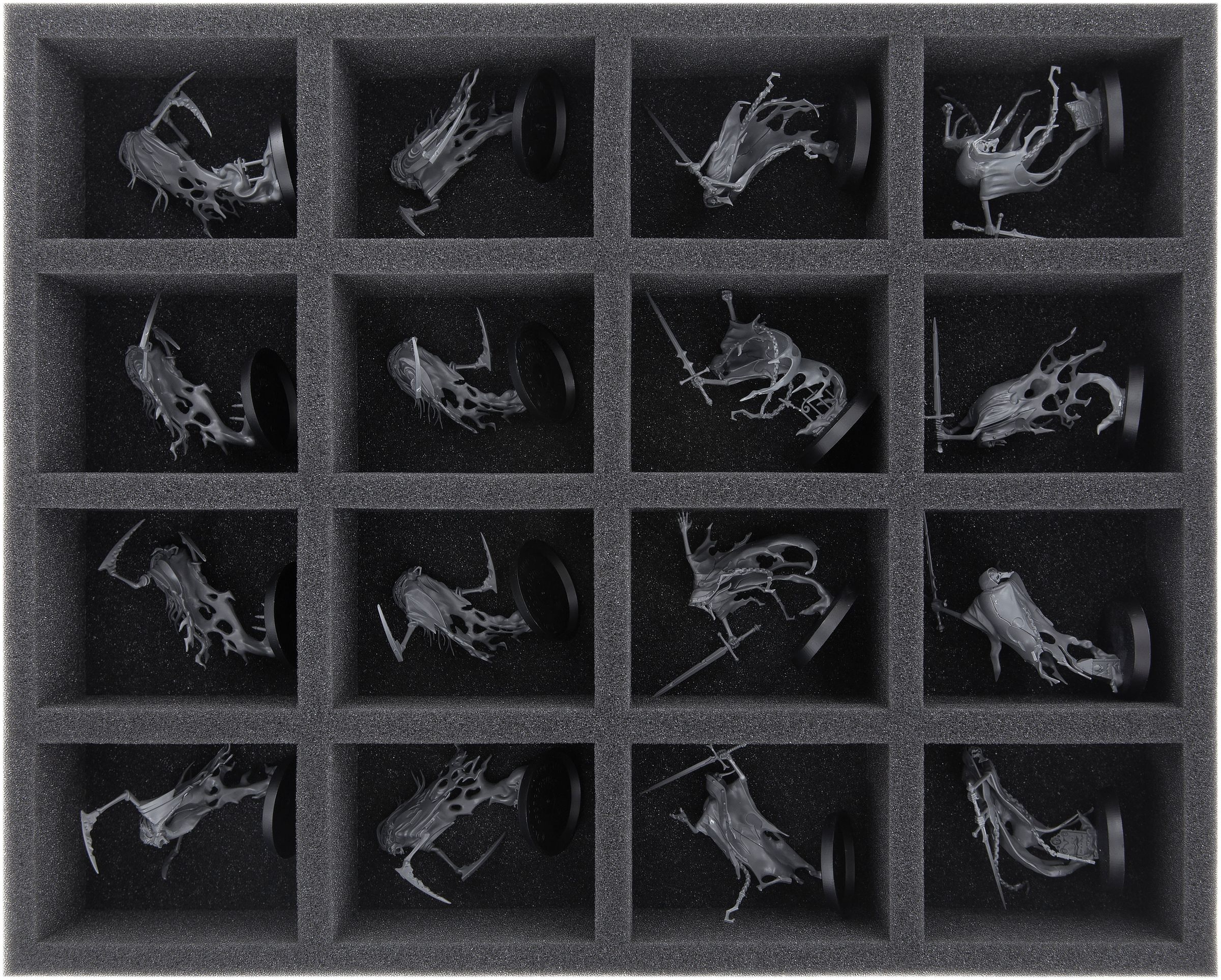 The foam topper provided ensures that all miniatures are completely surrounded by foam and that the figures of the upper insert do not bump against the lid of the box during transport.
