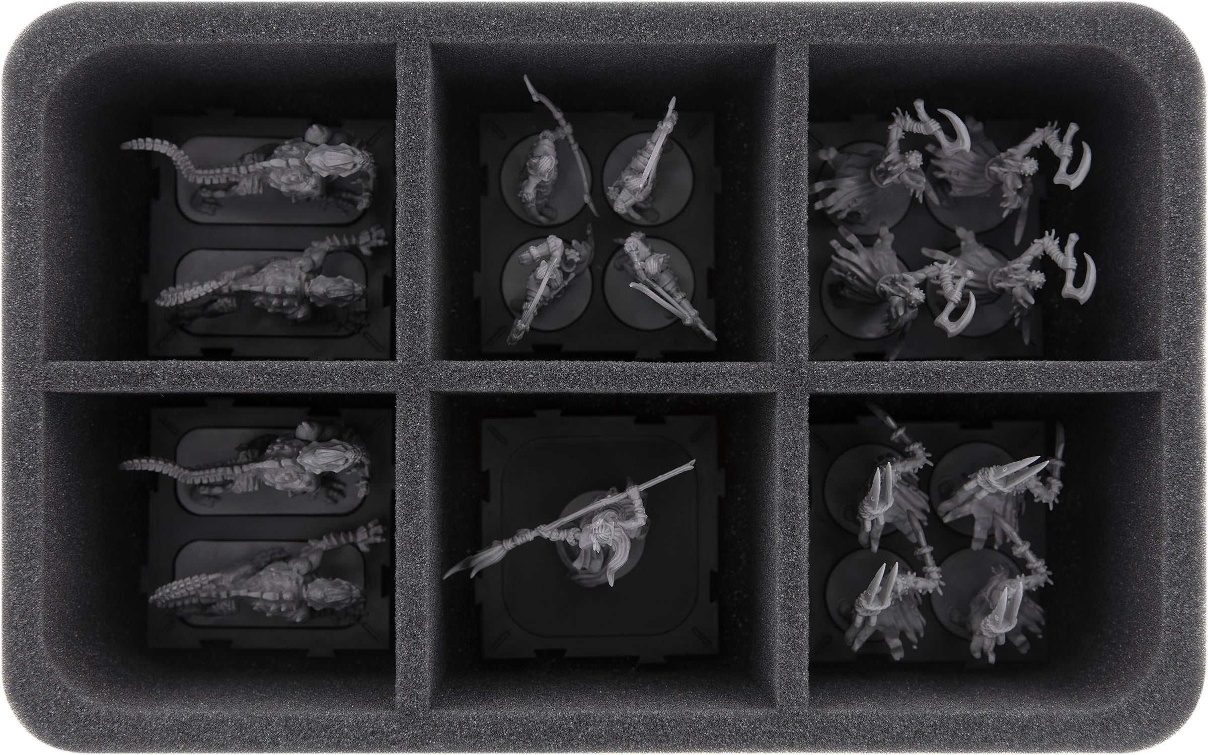 FSMEFC075BO: The Full-Size insert with 8 same-sized compartments is ideal for large unit figures such as Rune Golems, Maegan Cyndewin cavalry, Aymhelin Scions, and the Spined Thresher.