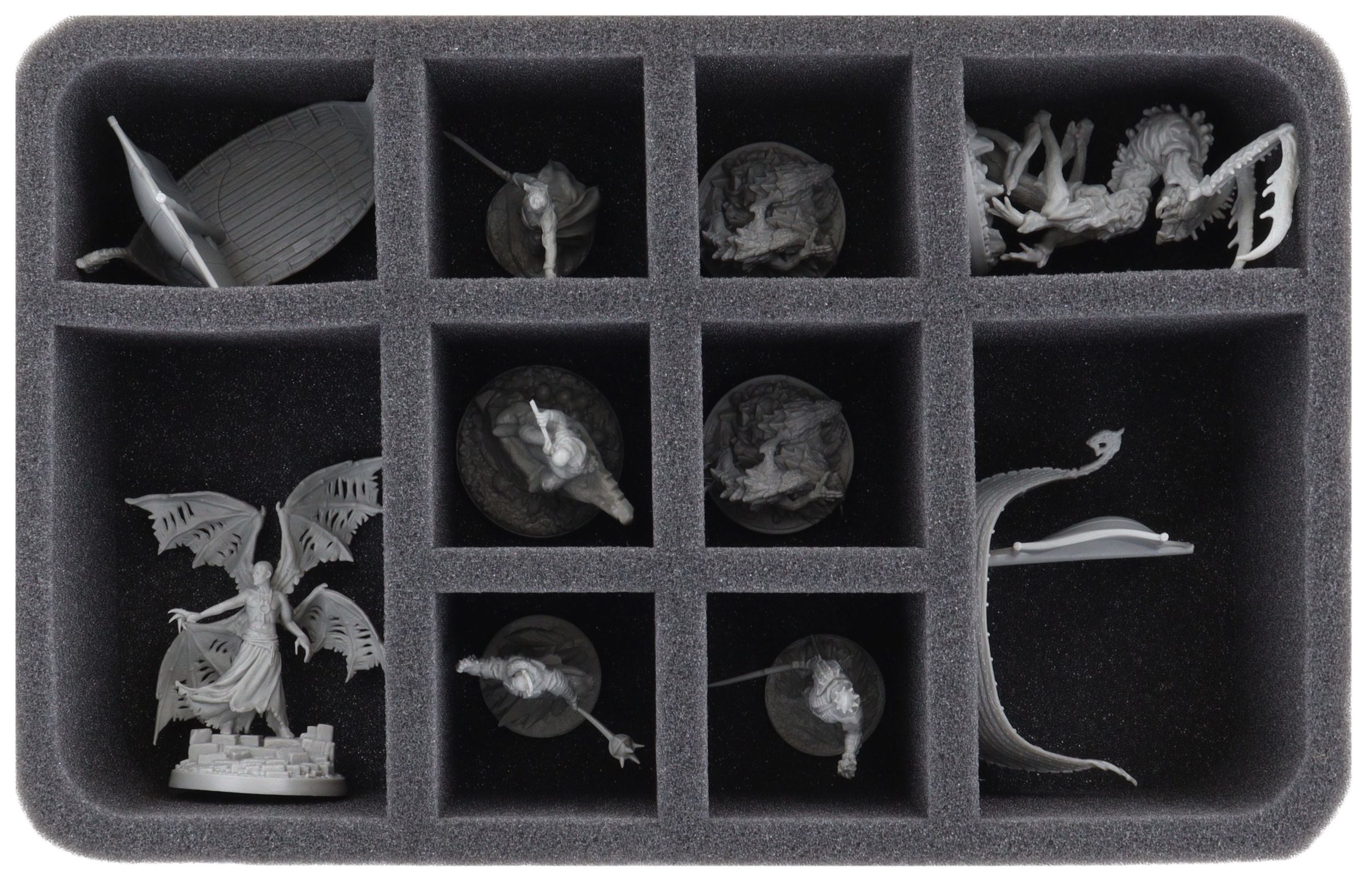 • 1 Half-Size foam tray with 10 compartments for miniatures (HSMFAH070BO)