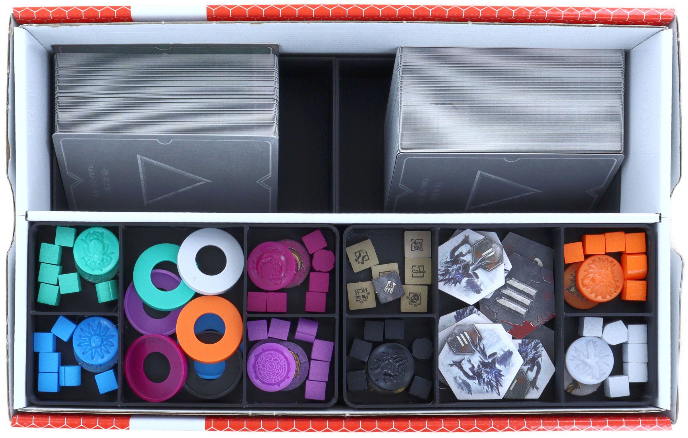 • For sorting the cards and game material, the set includes three TCHS105 Storage Boxes, a robust FSLB040 Storage Box, a hard foam insert and various organizer inserts.