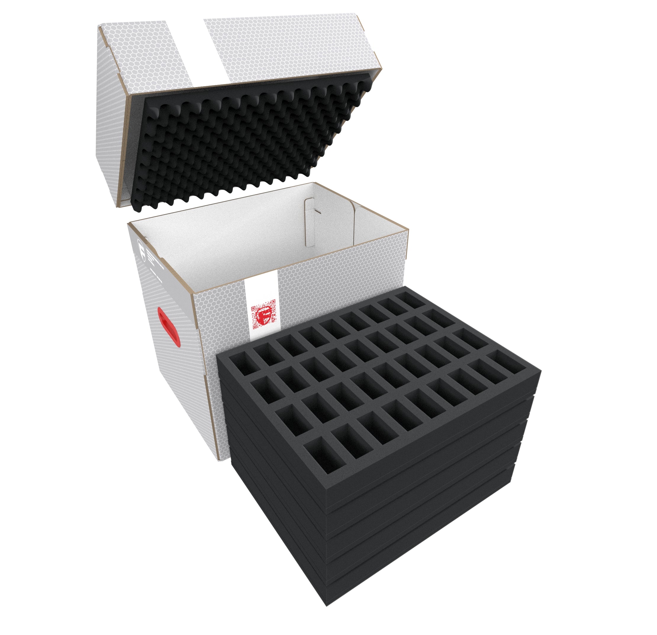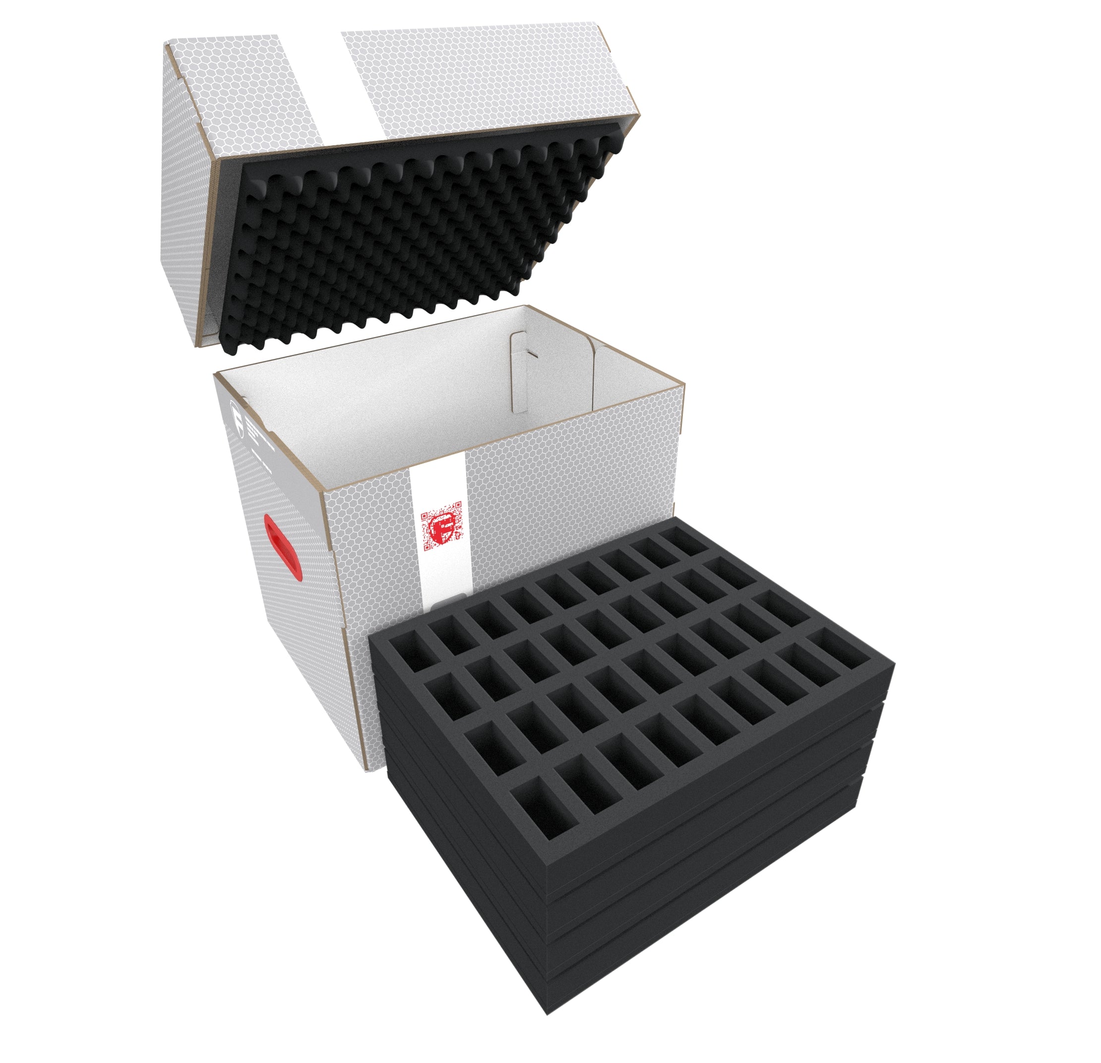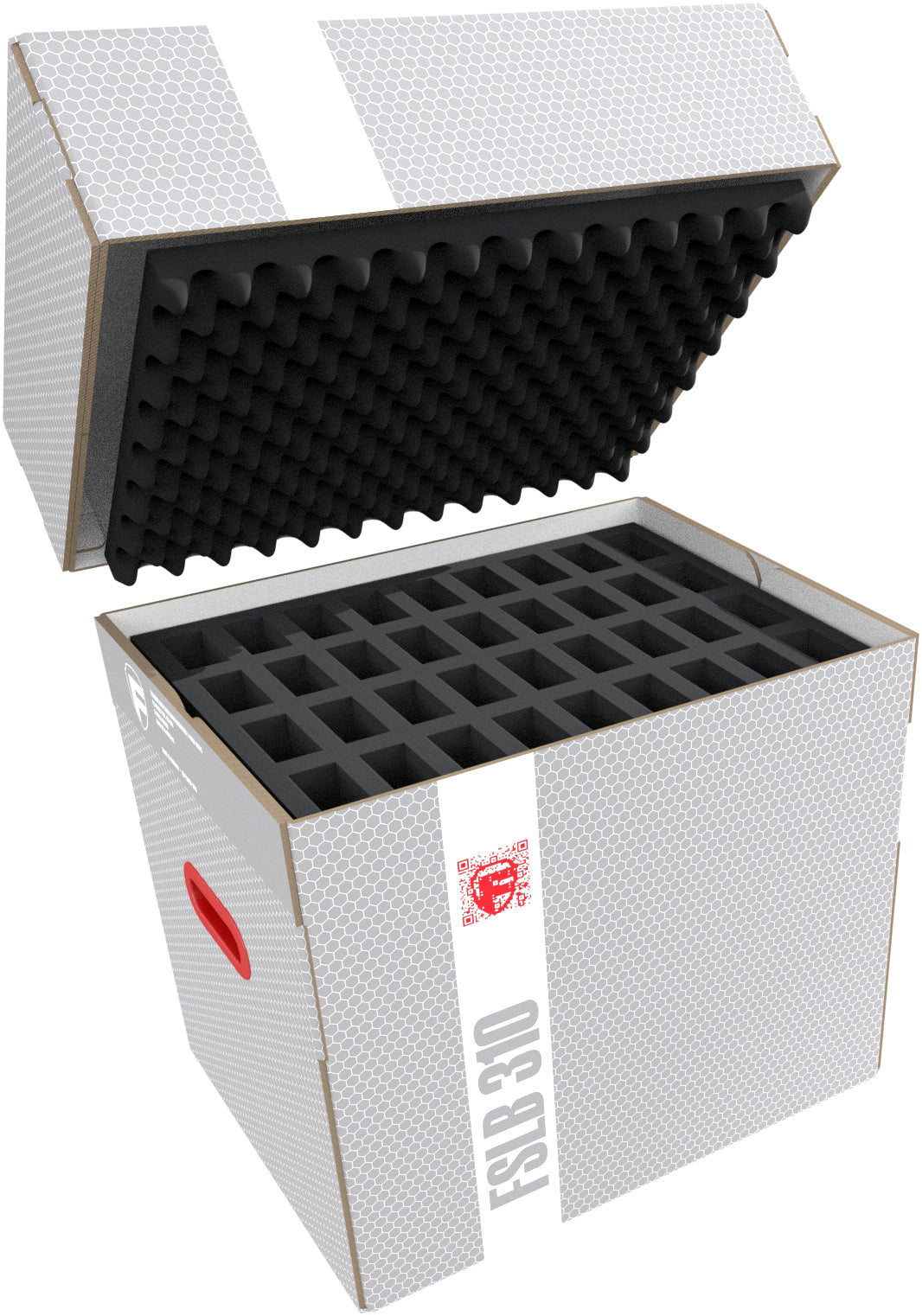 The light, robust Feldherr storage box FSLB310 for safe storage and transport of your miniatures. Filled with 7 foam inserts for slightly larger standard miniatures on bases up to 30 mm. Ideal for infantry and other classic figures of different tabletop and board game systems.