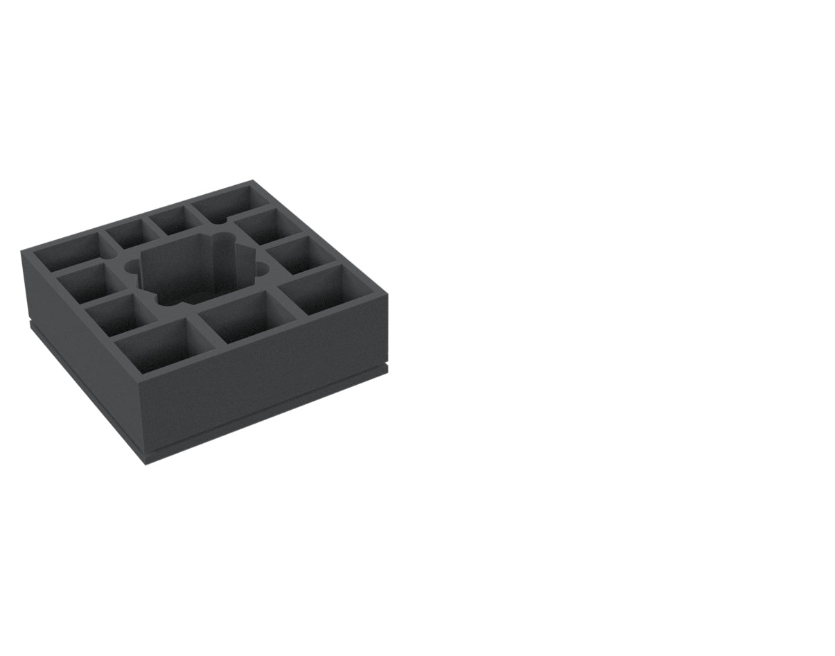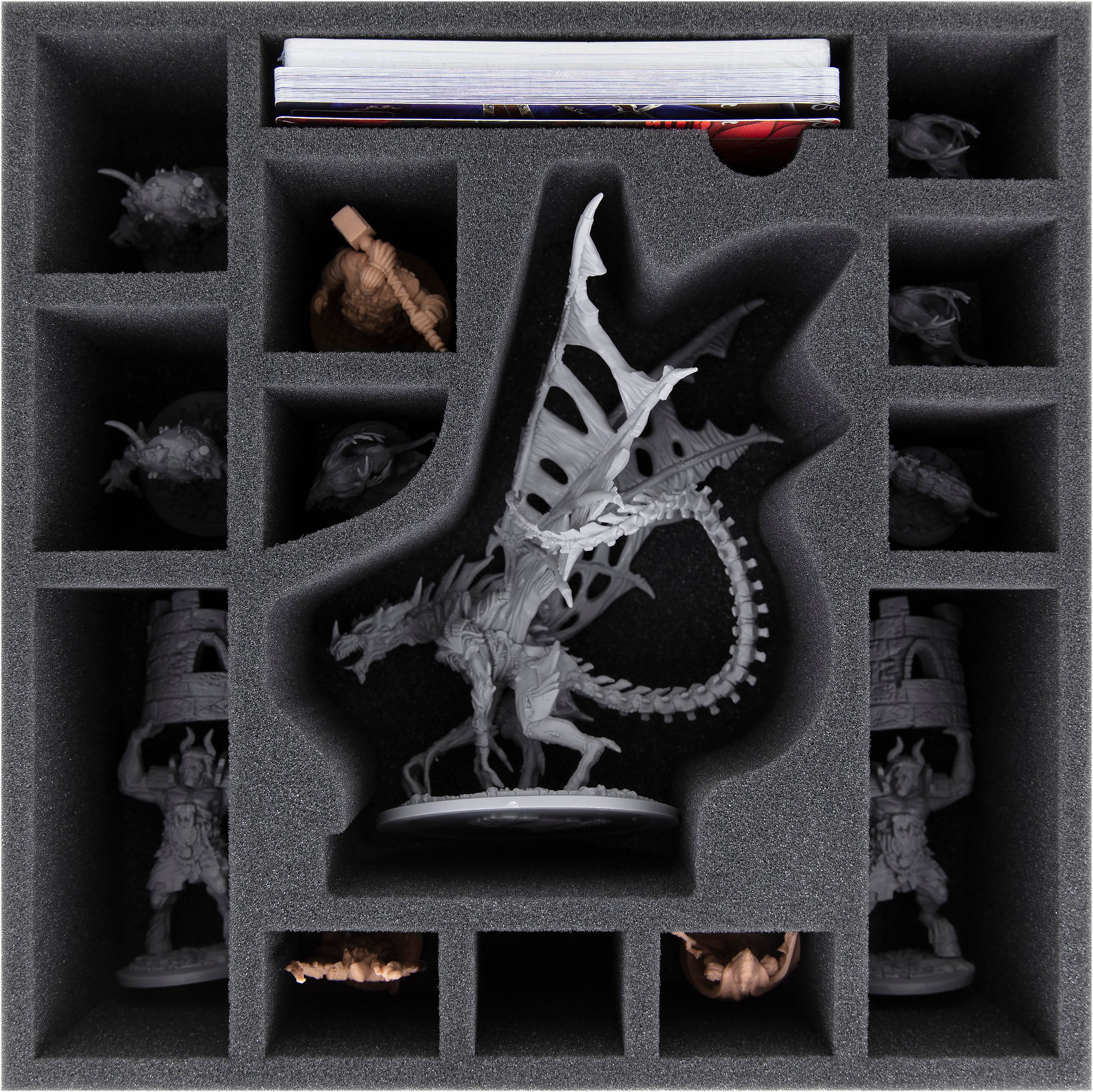 • 1 foam tray with 14 compartments for Necrodragon, Minotower, other miniatures and cards (AFMFBE100BO)