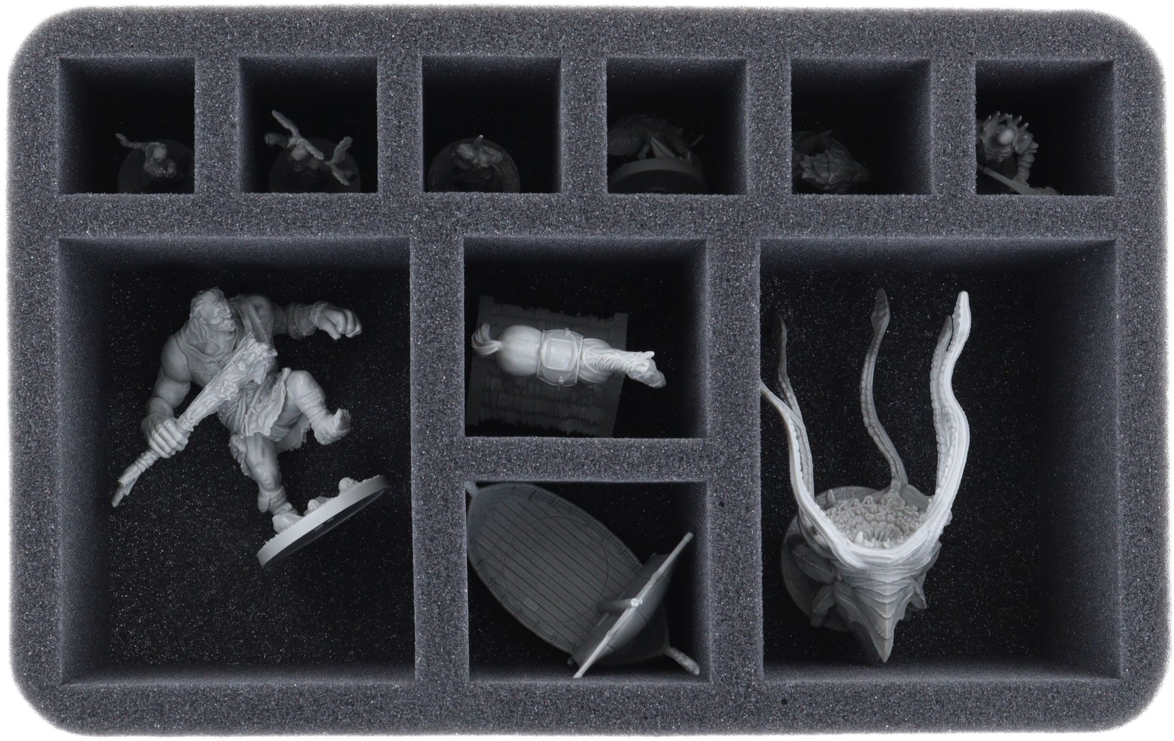 • 1 Half-Size foam tray with 10 compartments for miniatures (HSMFAH070BO)