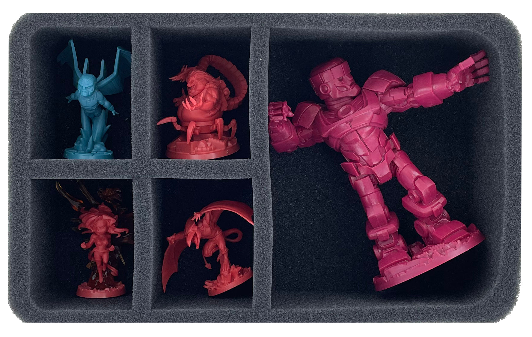 • 1 Half-Size foam tray with 5 compartments for a Sentinel and smaller miniatures (HSMFGD080BO)
