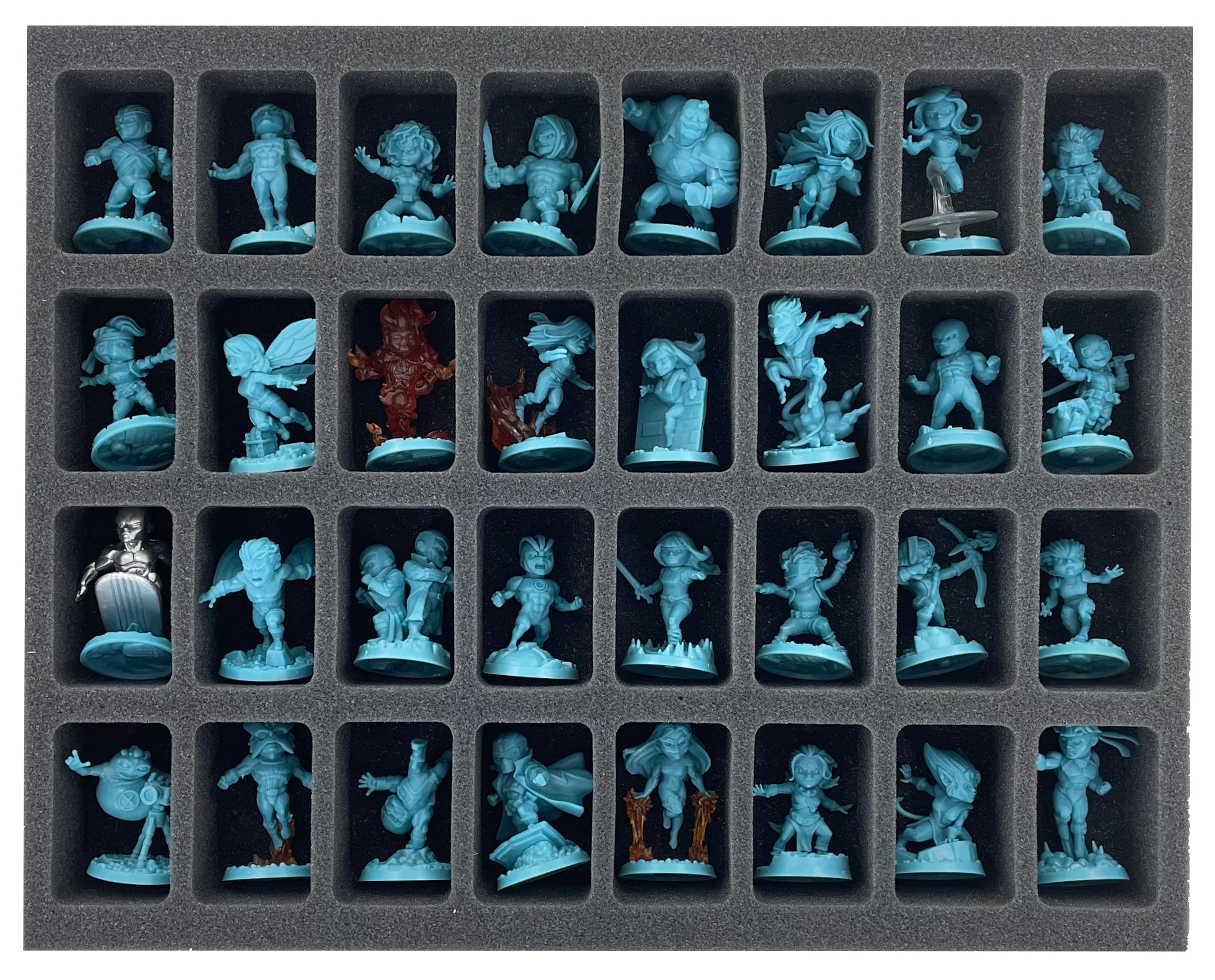 • 2 Full-Size foam trays, each with 32 compartments for miniatures (FSMEDS045BO)