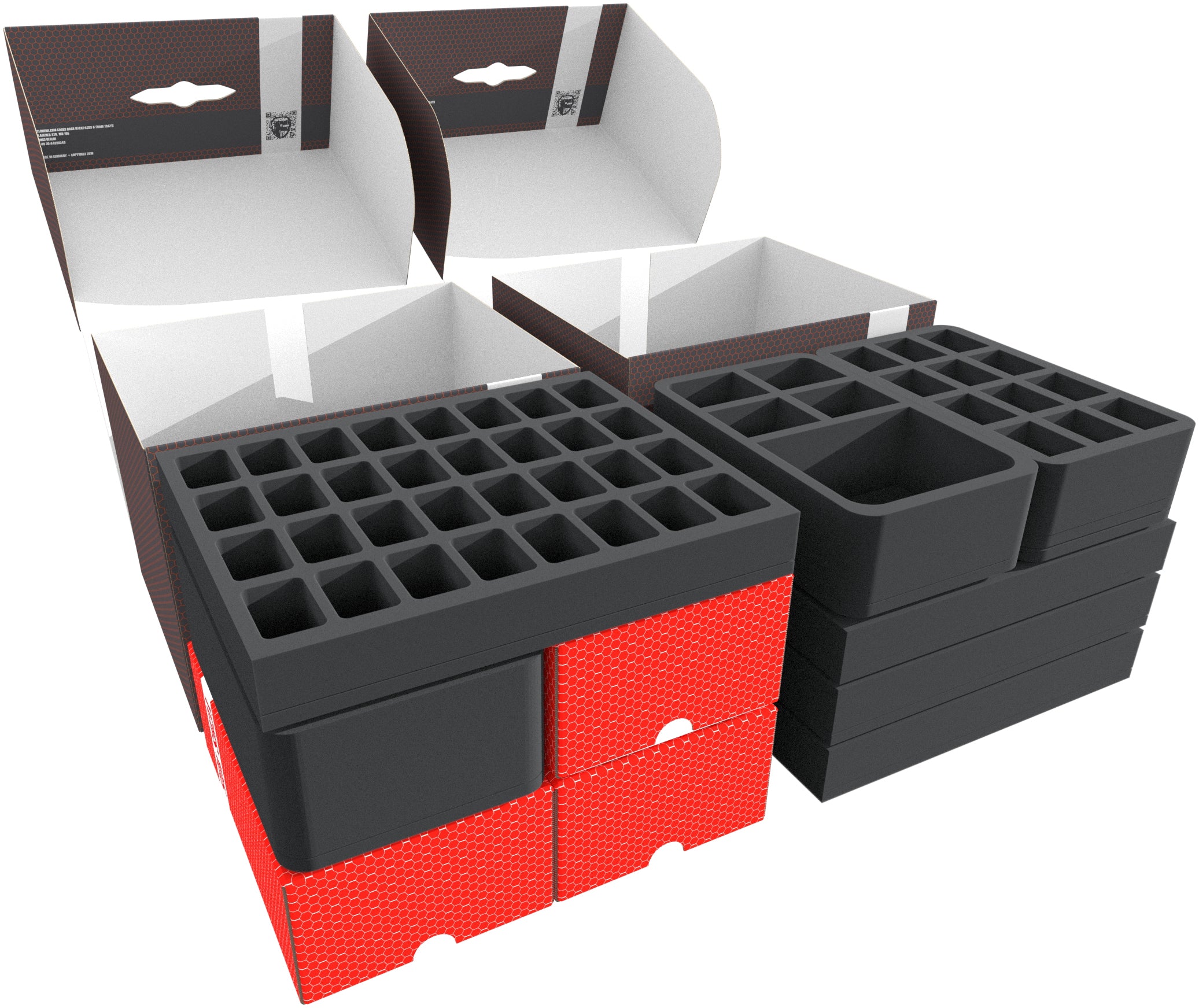 • 2 Full-Size foam trays, each with 26 compartments for miniatures and small game material (FSJQ050BO)
