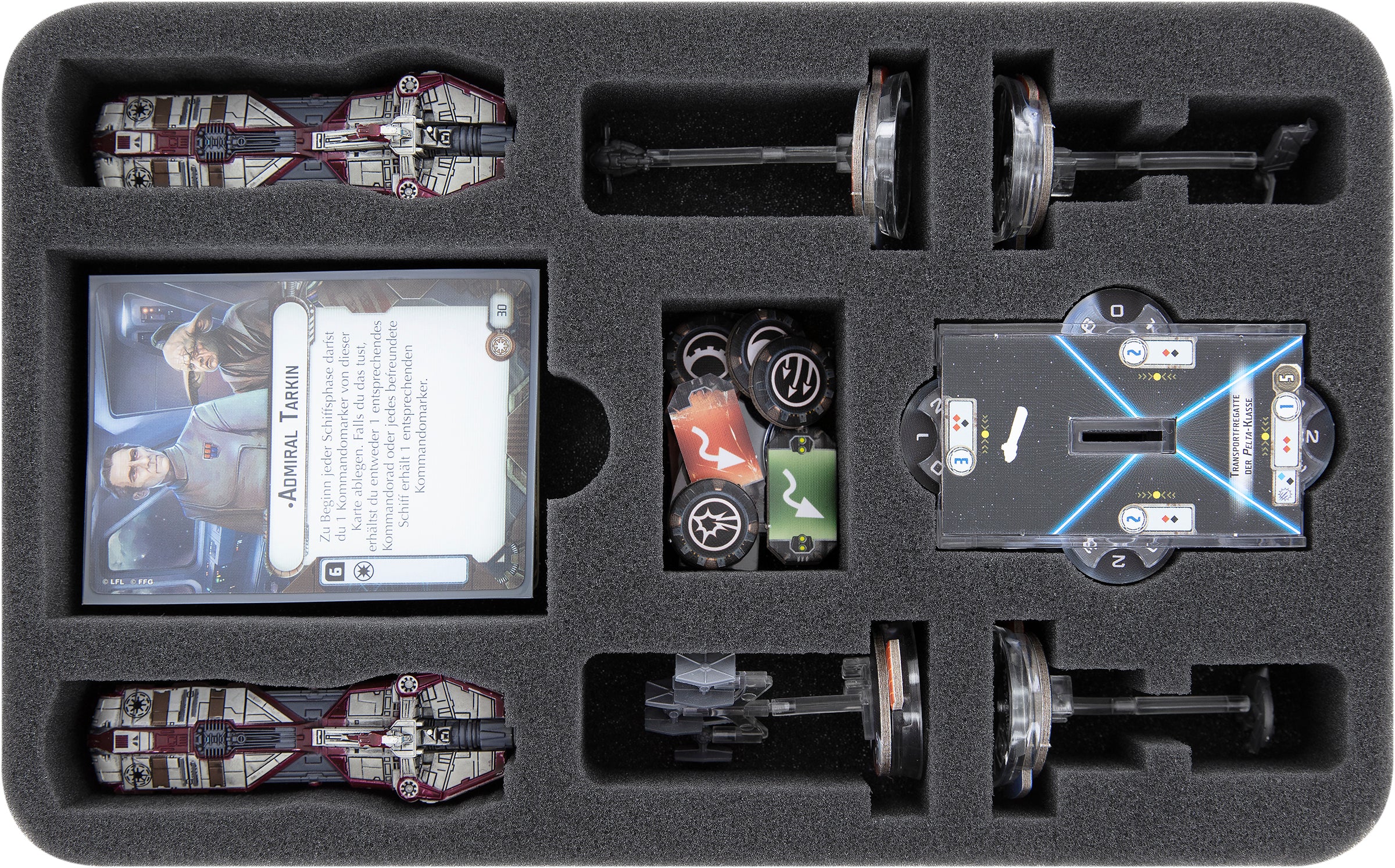 • 1 Half-Size foam tray for 2 Pelta-class Frigates + 4 Squadrons and accessories (HSMFDI045BO)