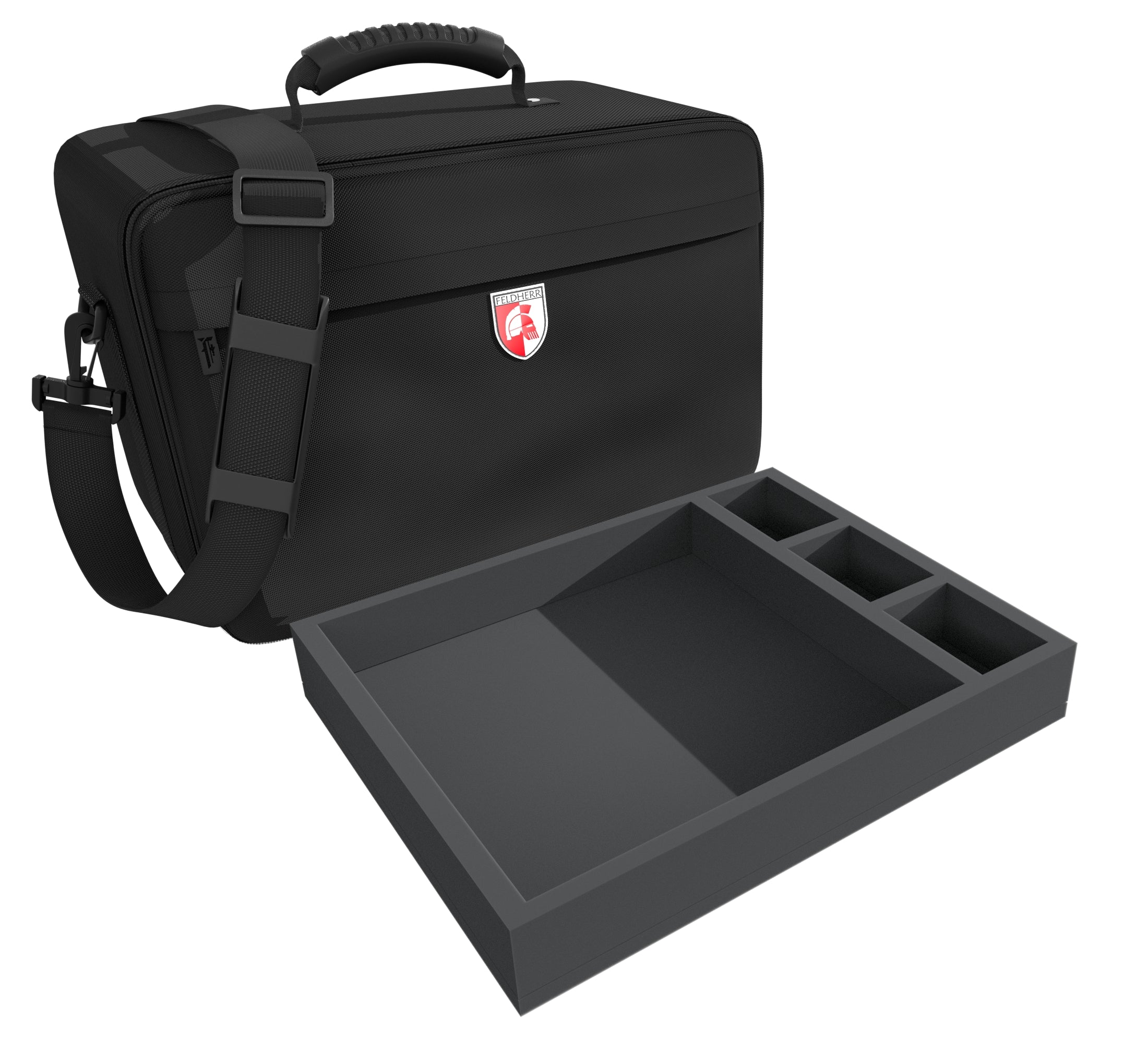 When fighting alien invaders, the stakes are high. Broken weapons or lost tokens should be avoided if possible. So we packed a convenient Feldherr MAXI PLUS bag with custom foam for you. Use it instead of the original board game box and transport the contents of the “Siege of the Citadel” core game well protected and neatly stowed away to the next mission.