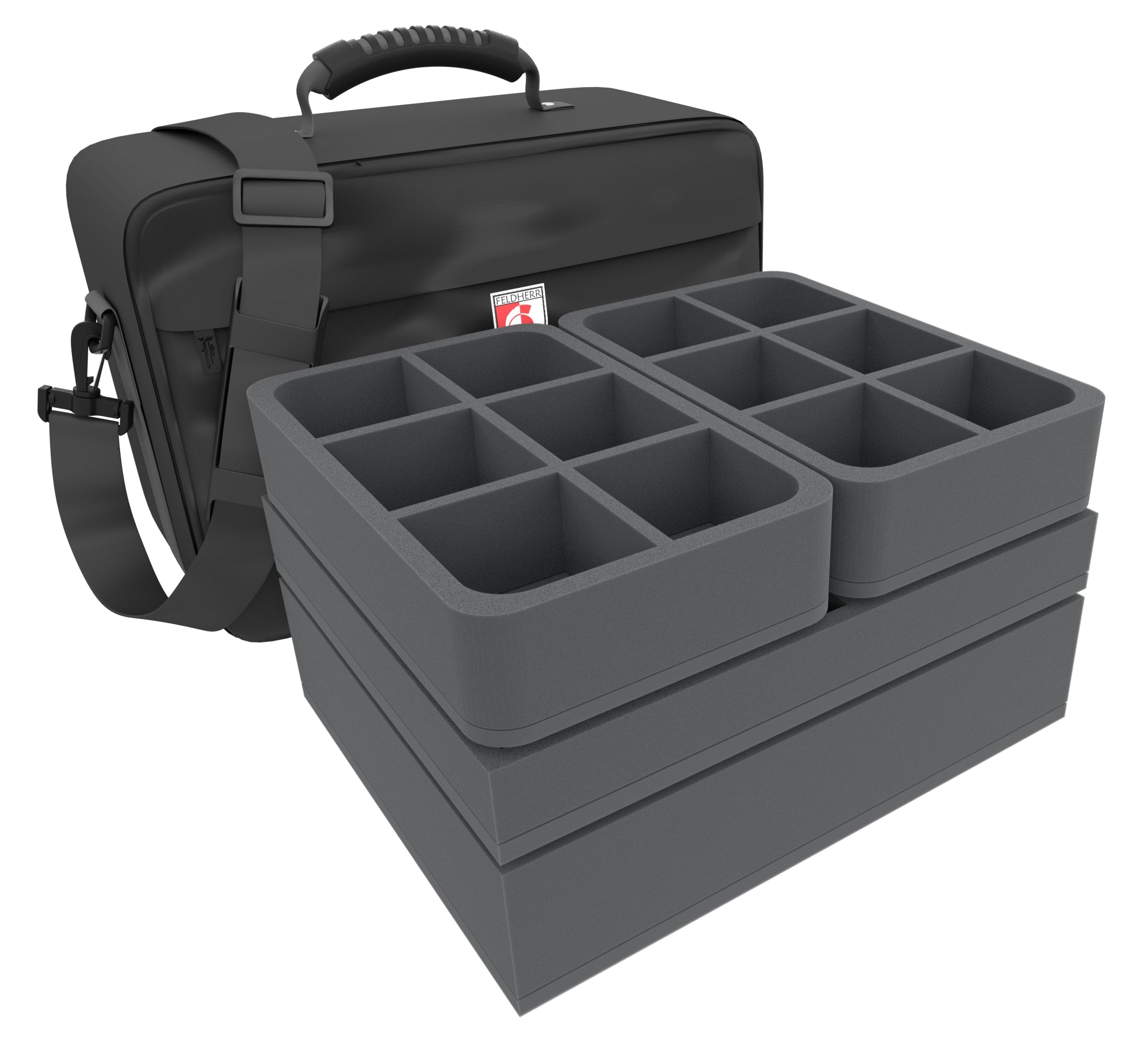 Two Full-Size and two Half-Size foam trays keep your infantry and tanks safe and organized. Accurate-cut compartments for each miniature prevent the figures from sliding around or bumping into each other during transport. This way you ensure that the weapons and equipment remain on the model. Plus, the soft foam protects the colors of your painted figures from abrasion and scratches.