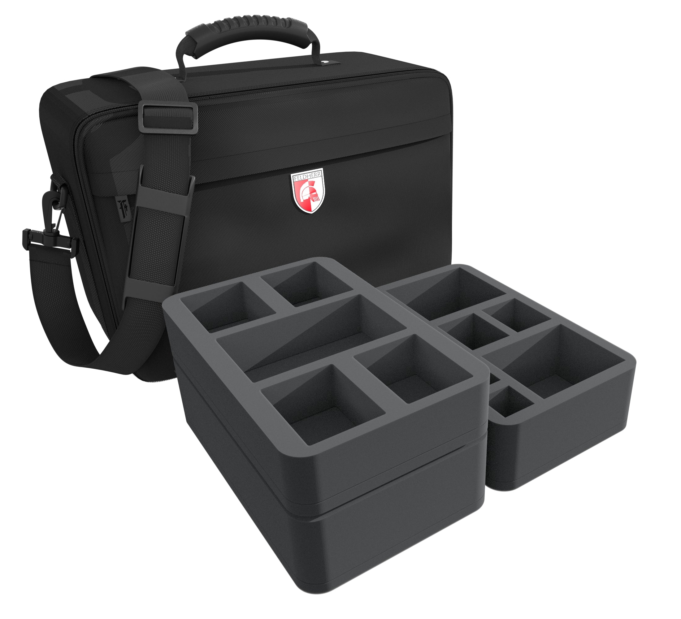 The included foam mats and foam topper ensure that your miniatures and cards are securely packed all around and survive the transport to the game with your friends undamaged.