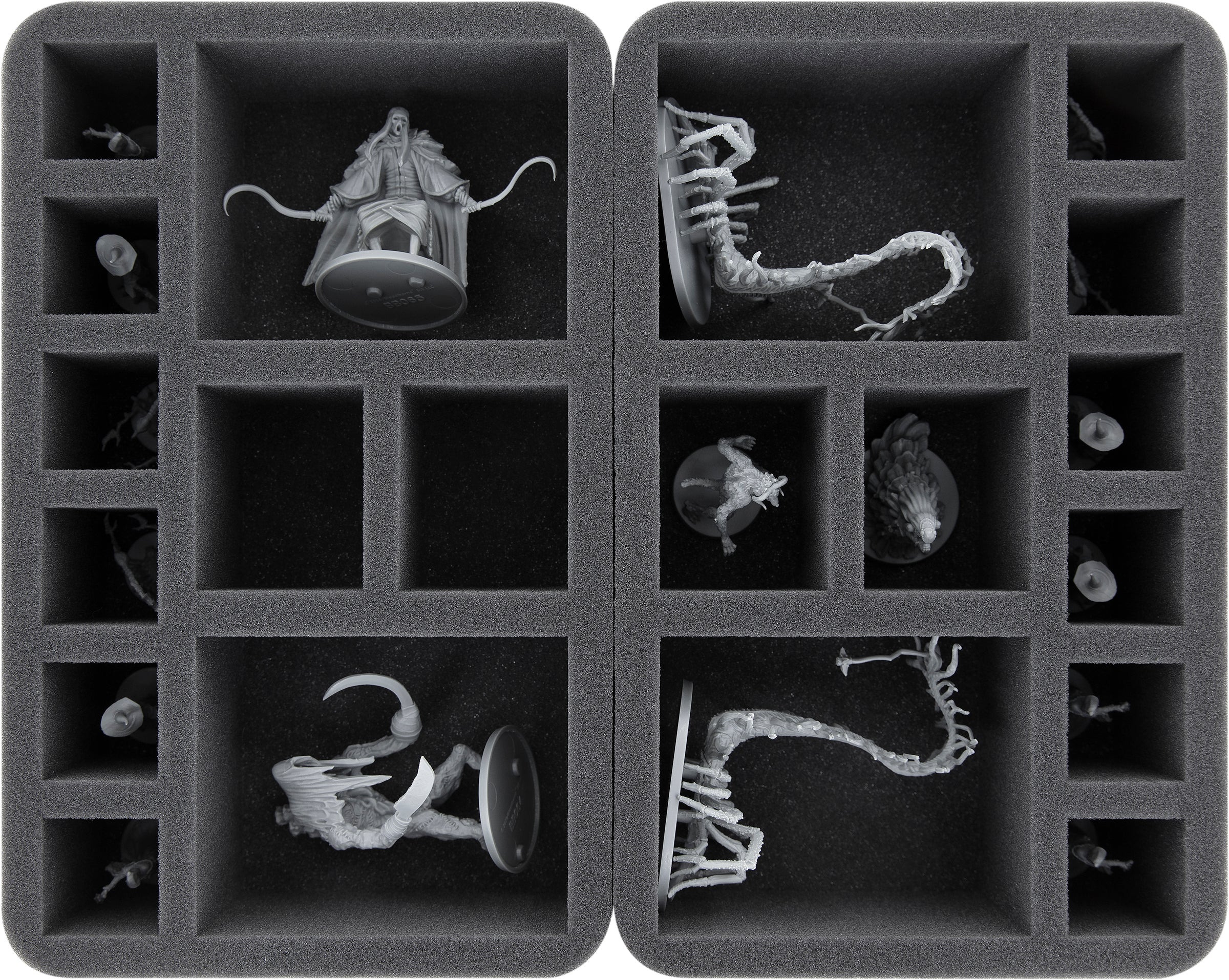 • 2 Half-Size foam trays for 10 miniatures each (HSMFAZ070BO)