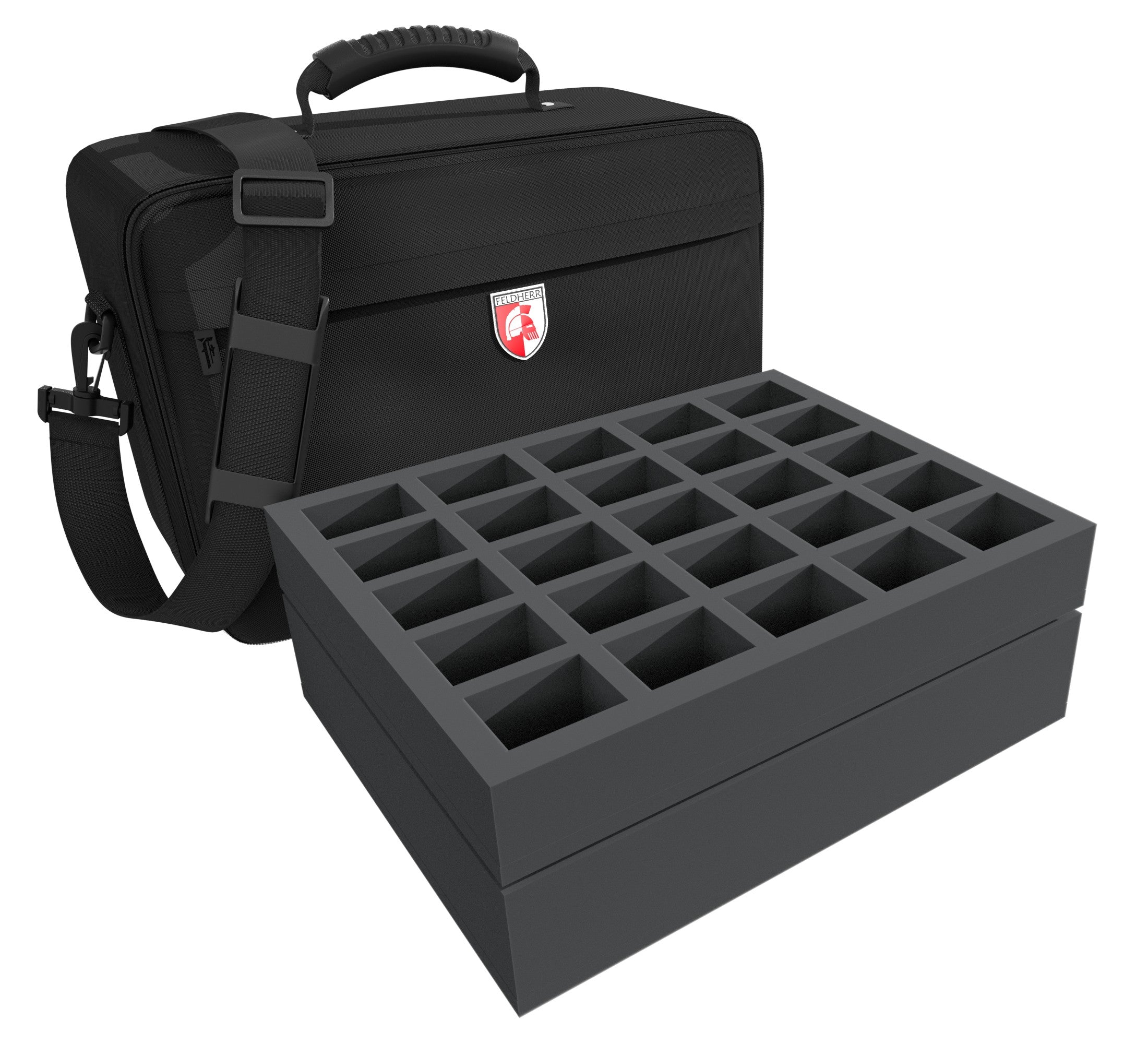 • 2 x 50 mm foam trays for 25 large based miniatures each
