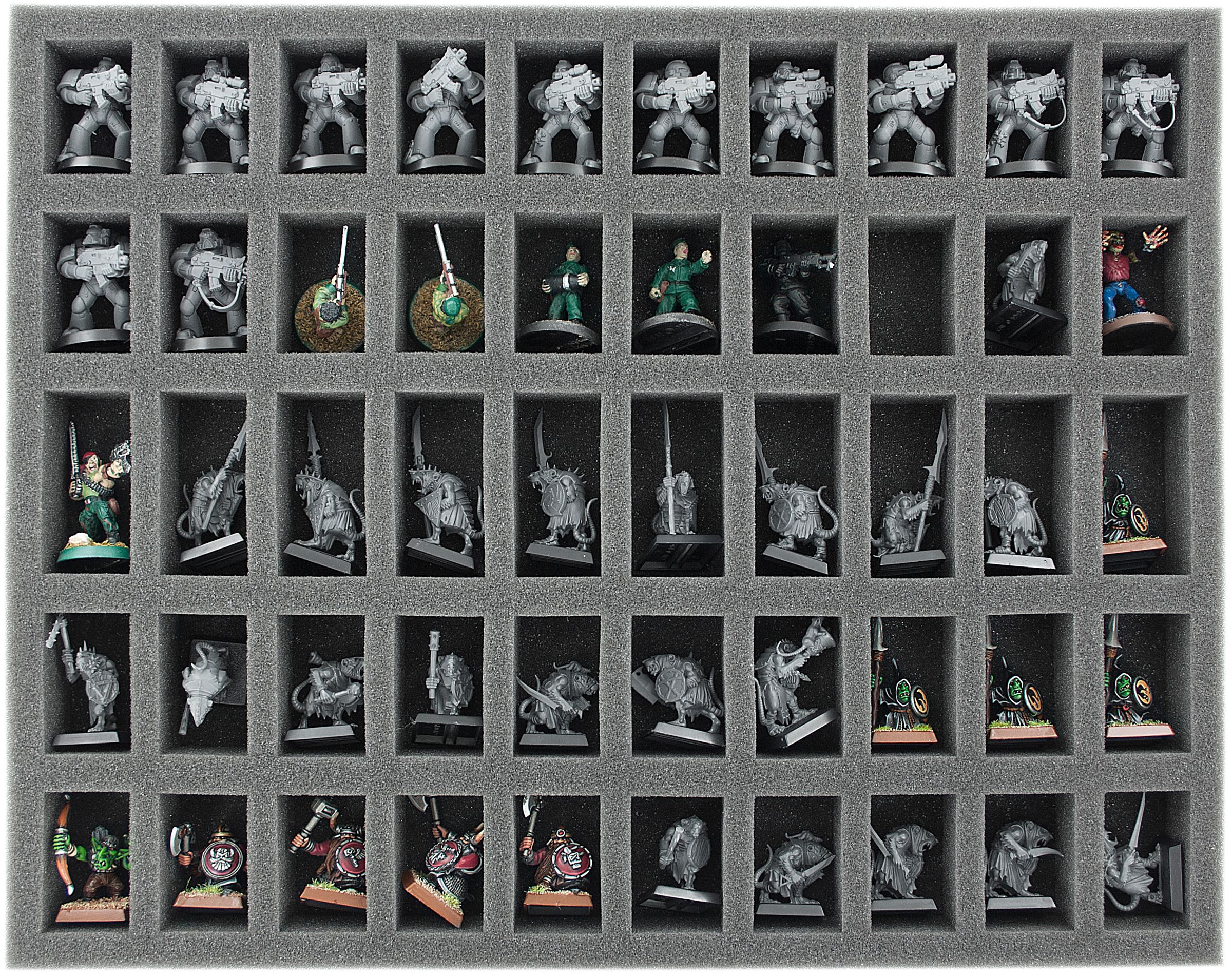 Our MEDIUM PLUS contains matching foam for up to 200 miniatures. The fine-pored foam provides reliable protection against damage - fragile parts stay intact, the color of painted models remains unharmed.