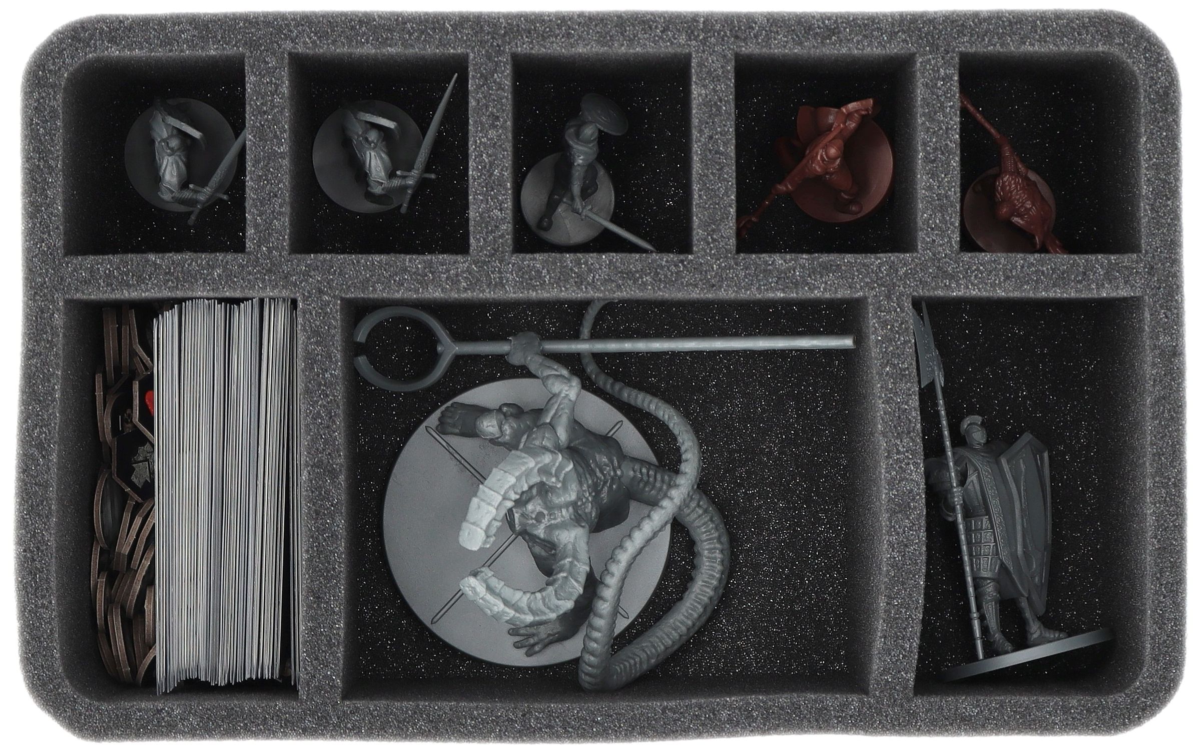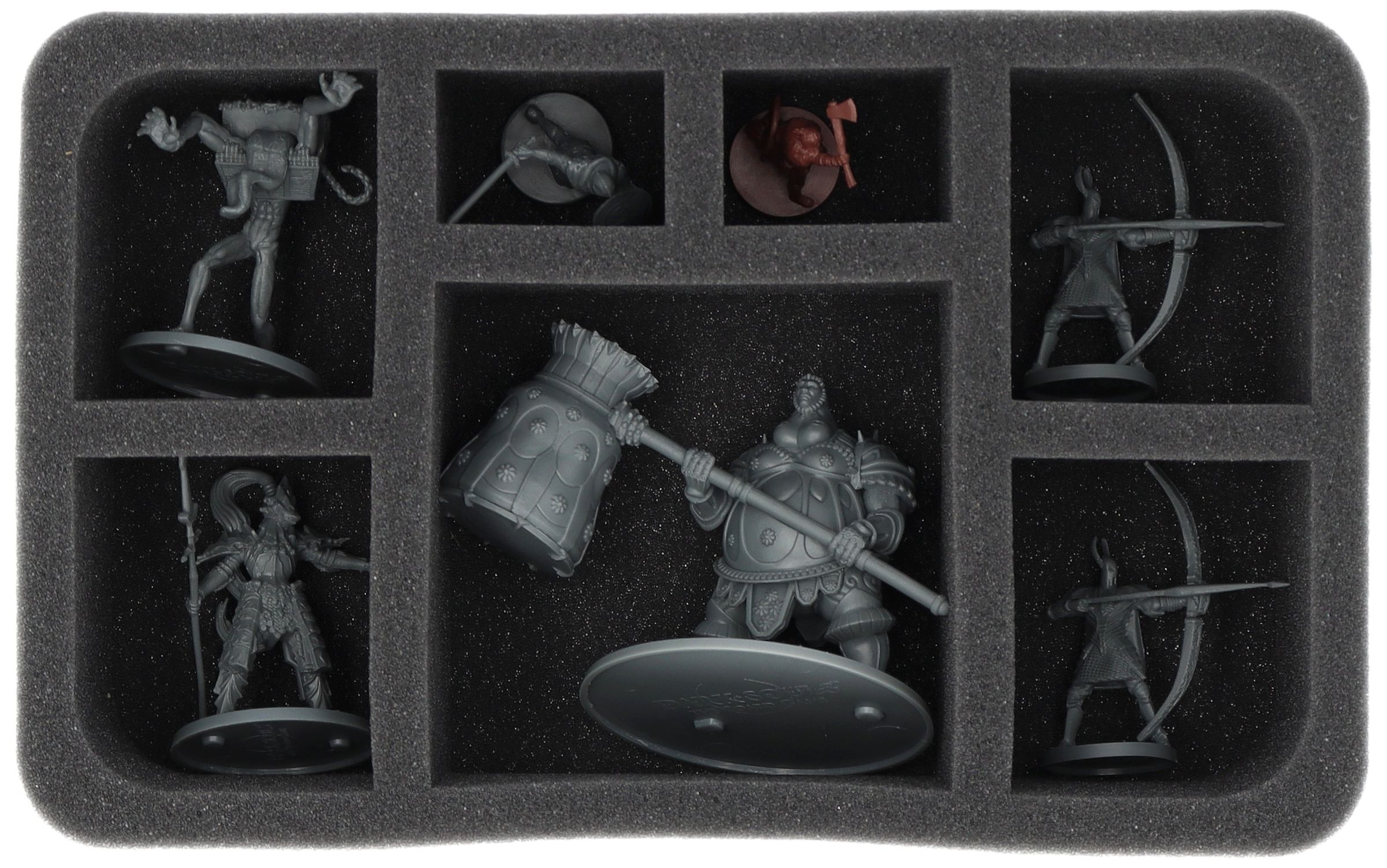 • 1 Half-Size foam tray with 8 compartments for miniatures and game material (HSMFFB095BO)