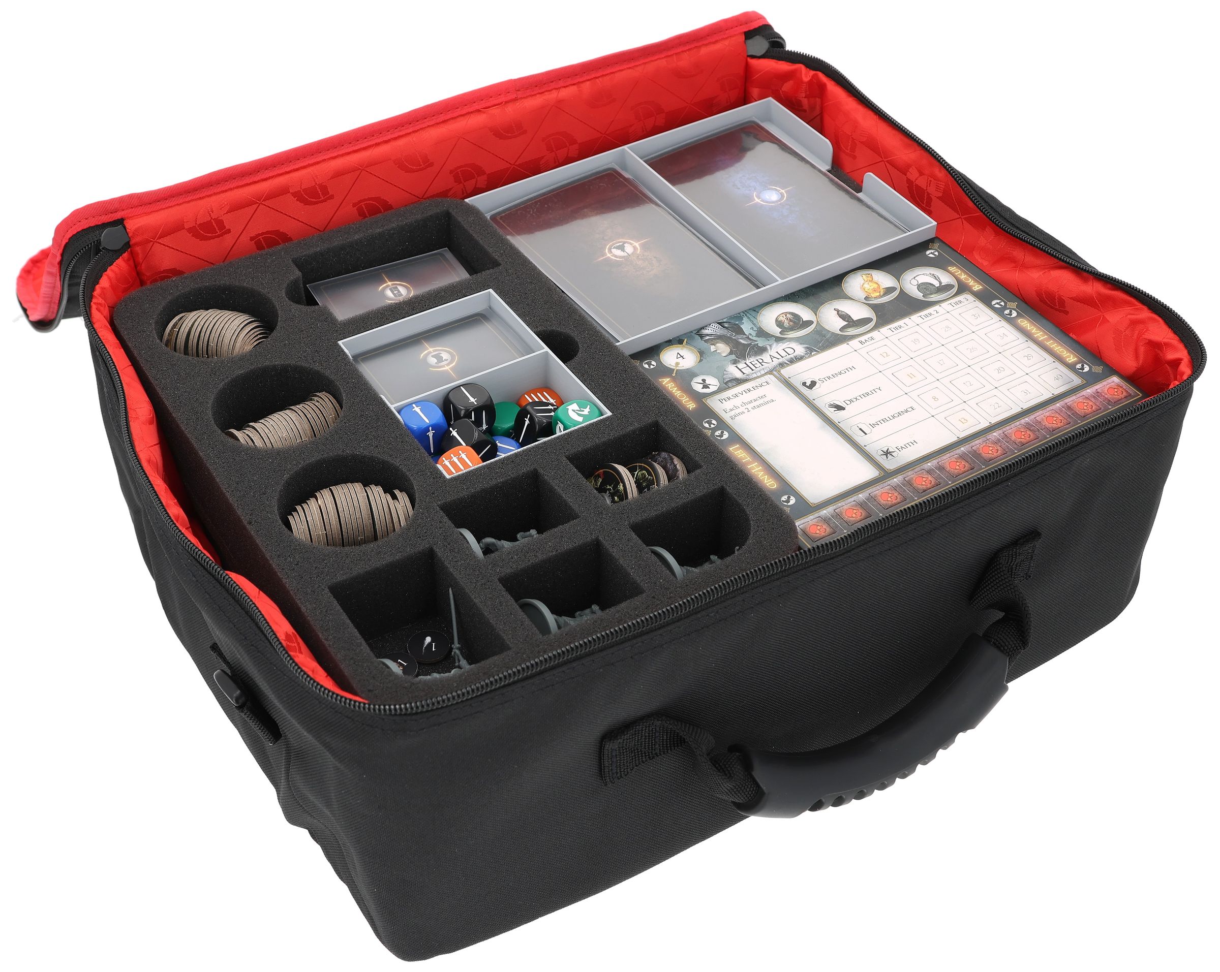 So you're always ready and prepared for your next adventure in Dark Souls: The Sunless City, this Feldherr Medium Plus case offers a thoughtful and convenient storage solution. With custom-fit foam inserts and 3D-printed card holders, it keeps your miniatures and all your game material organized and protected.
