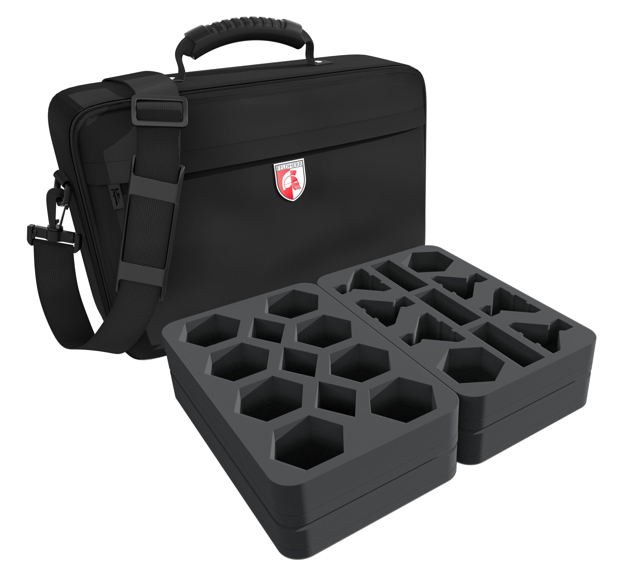 In the grim darkness of the future, there is only war. Defend the Imperium on land, sea, space, and up in the air. The pilots of the Imperial Navy protect humanity every day anew. With daring maneuvers, unmatched precision, and a good shot of heroism, they defy the invading Xenos. With this Feldherr MEDIUM bag and matching foam trays, your heroes of the air will arrive safely and comfortably at the gaming table.
