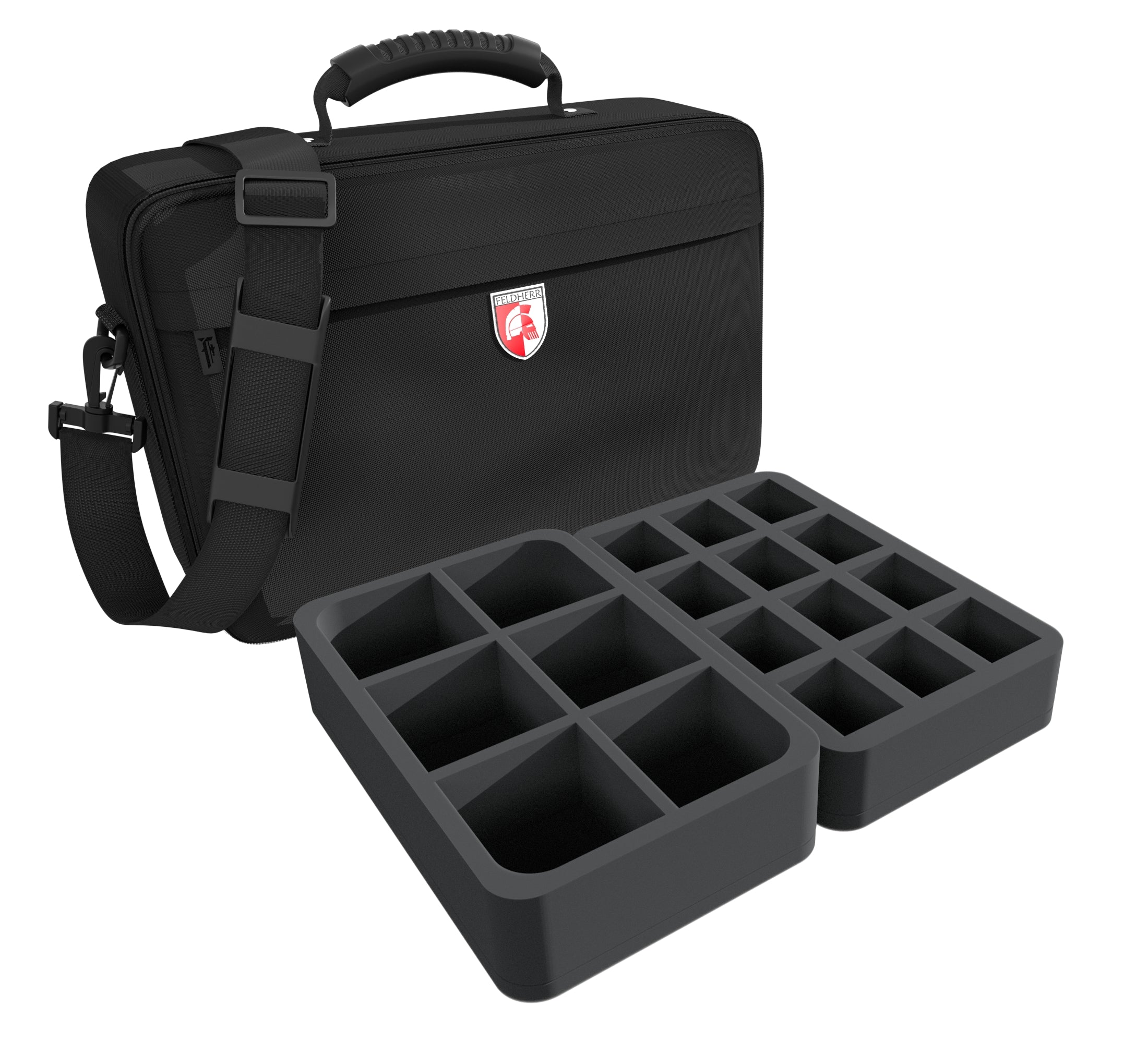 The Feldherr MEDIUM bag is made of particularly robust fabric and ensures that its contents are optimally preserved from external influences. Padded side panels and a reinforced base additionally ensure that your miniatures are optimally protected from external influences, even when transported by car or train.