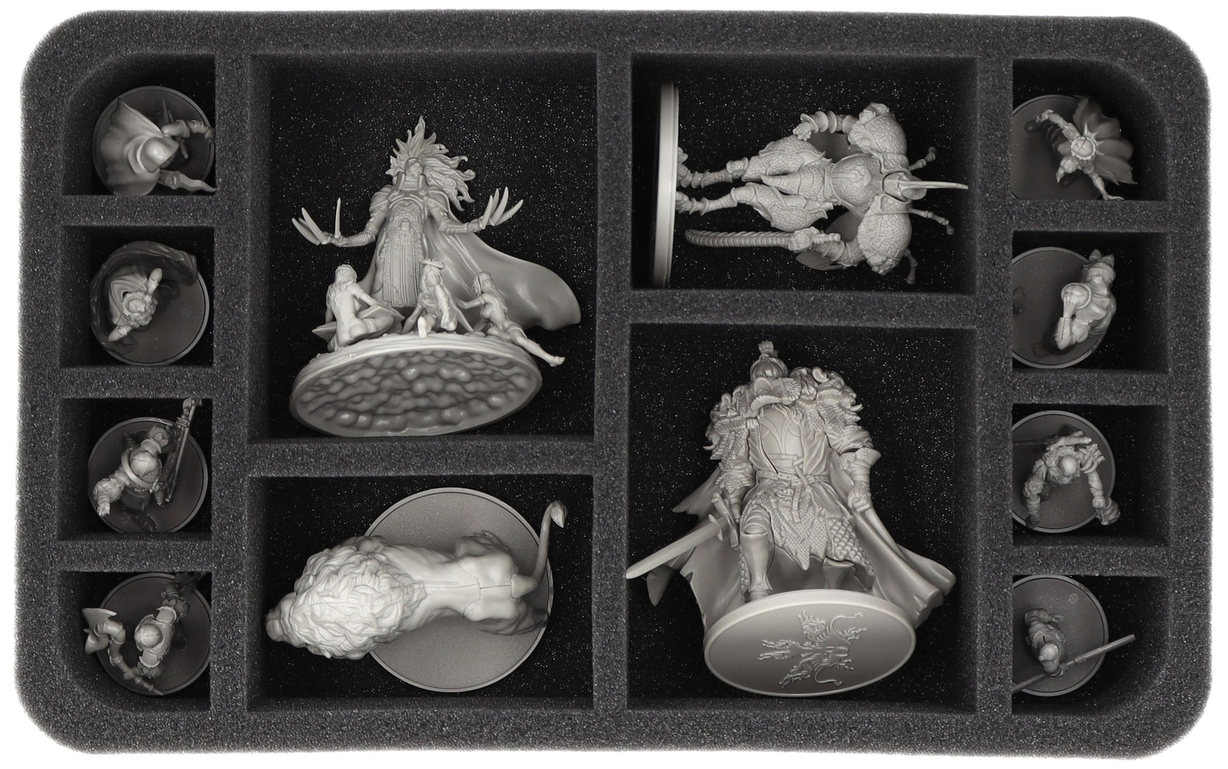 Your miniatures are optimally protected in this compact MEDIUM bag. Safely transport up to 26 miniatures from Kingdom Death: Monster to the tabletop in these custom-designed Feldherr foam inserts.