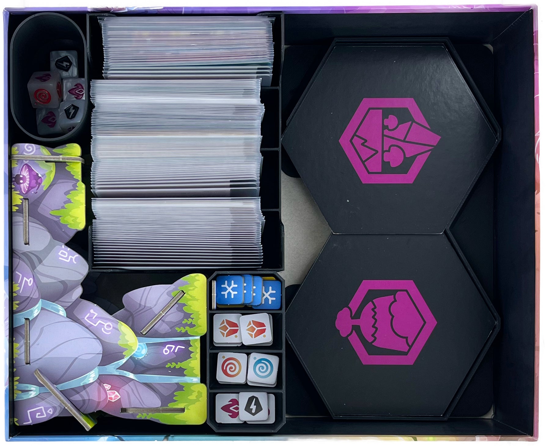 Fortunately, a suitable solution from Feldherr brings light into the darkness. It conjures up the order in your board game box. Plastic inserts ensure a clear structure and offer enough space for all contents of the Kickstarter Exclusive Edition. In addition, there is enough space for the dice tower and expansion. Keep track and let the Feldherr Organizer ensure an improved gaming experience.