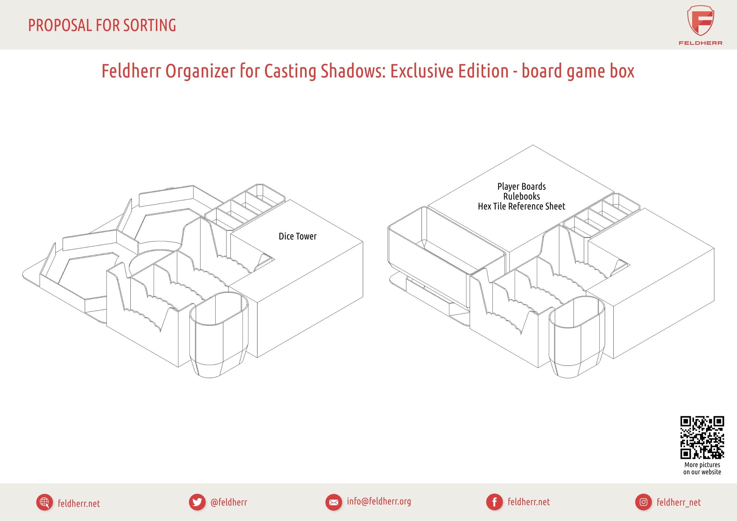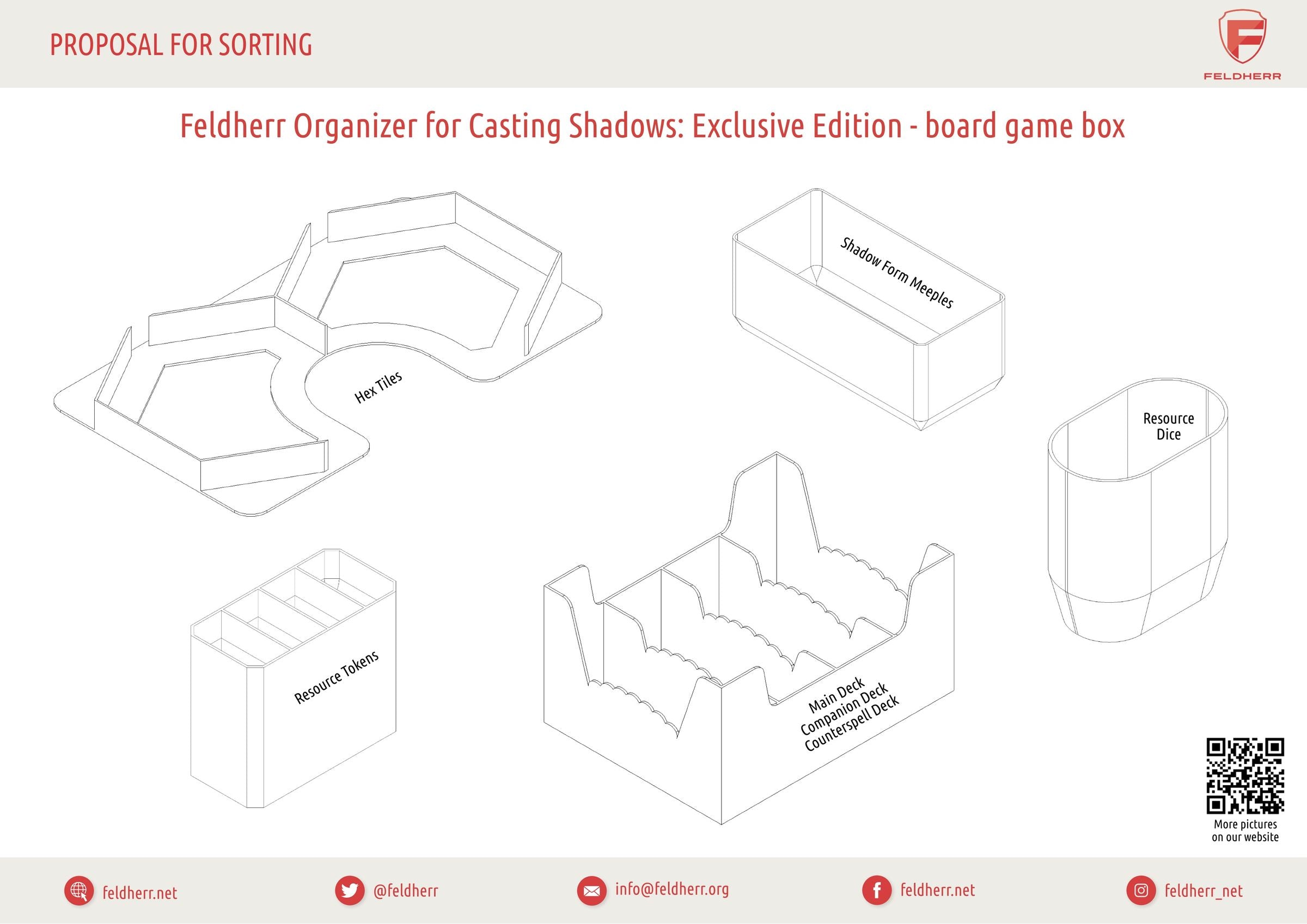 - The Organizer fits in the original Casting Shadows: Exclusive Edition board game box.