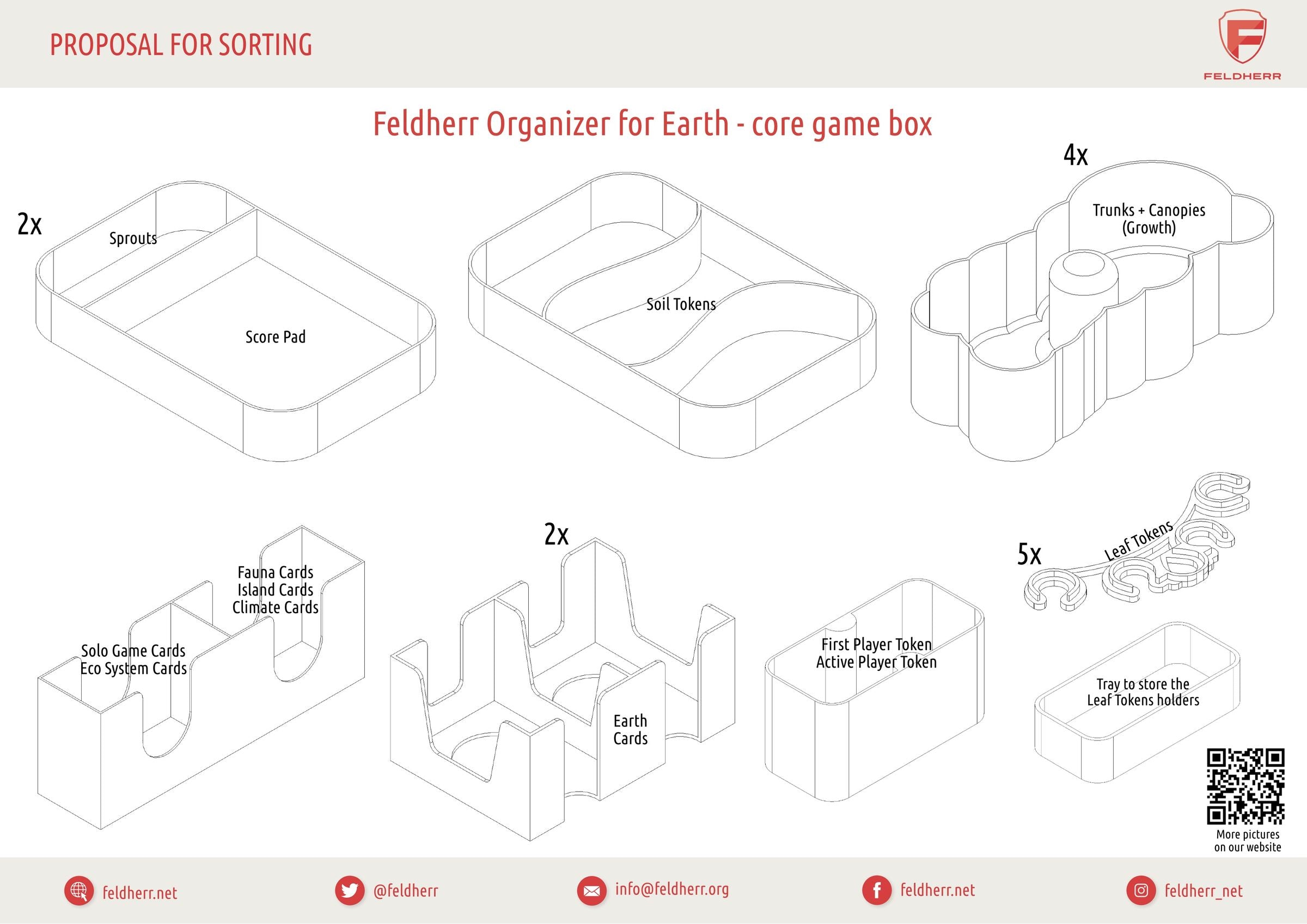 • Four token trays with one compartment each for growth tokens (trunks, canopies).