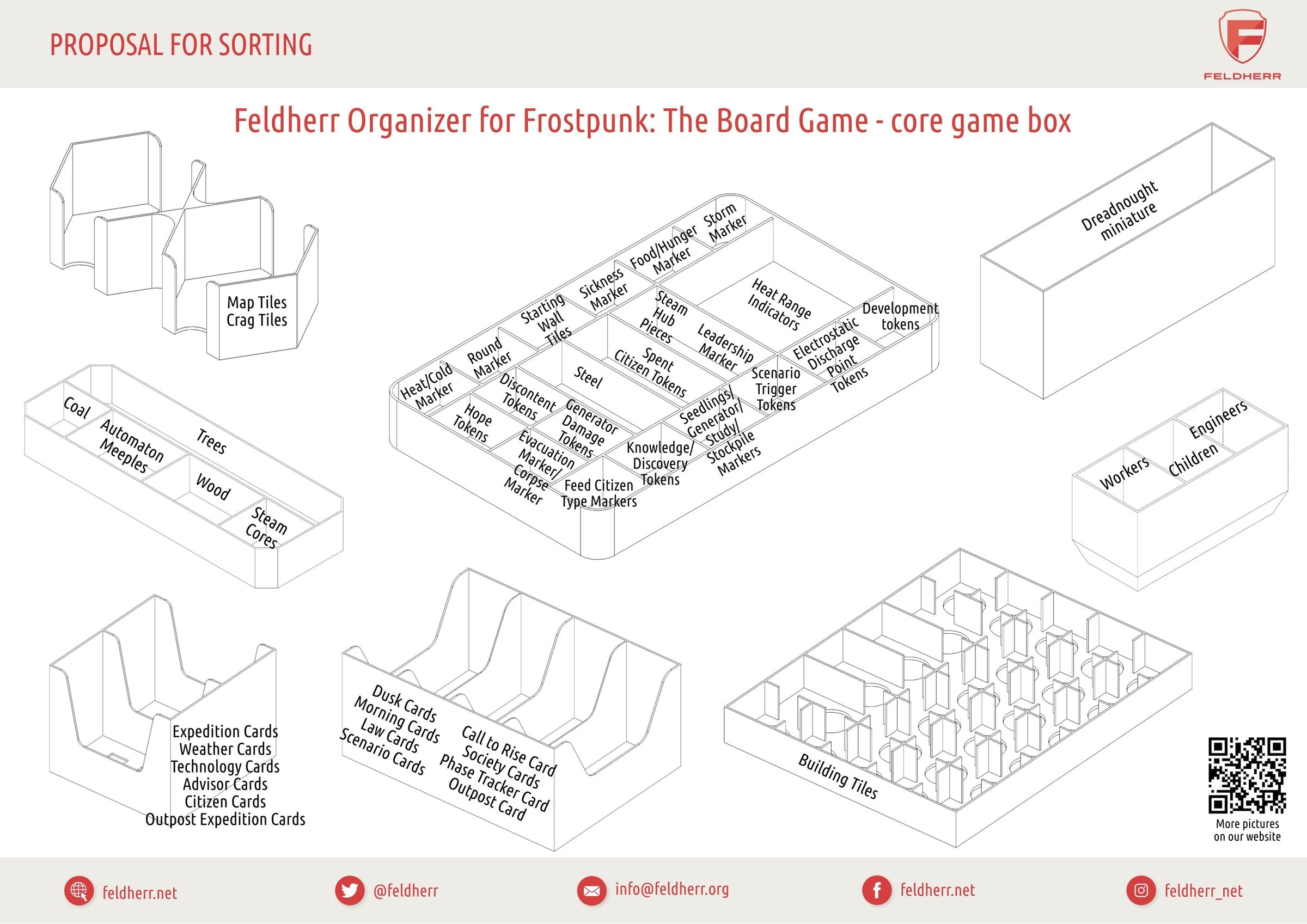 - The Organizer fits into the original “Frostpunk: The Board Game” core game box by 11 Bit Studios.